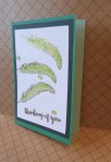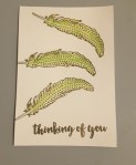 My entry into the two challenges was quite simple. I stamped and embossed in black, and gave a water-colour wash as the background using my Aquatints. I did make a mistake – again – and coloured the background in a yellowish colour, then went below the owls with green – so far so good, then I went above the owls with blue. So – what do you get when you mix blue and yellow? Yep – green! I therefore had a totally green background. So – wet the background down, removed most of the colour from the top half, then added a washed-down blue. Sorted.