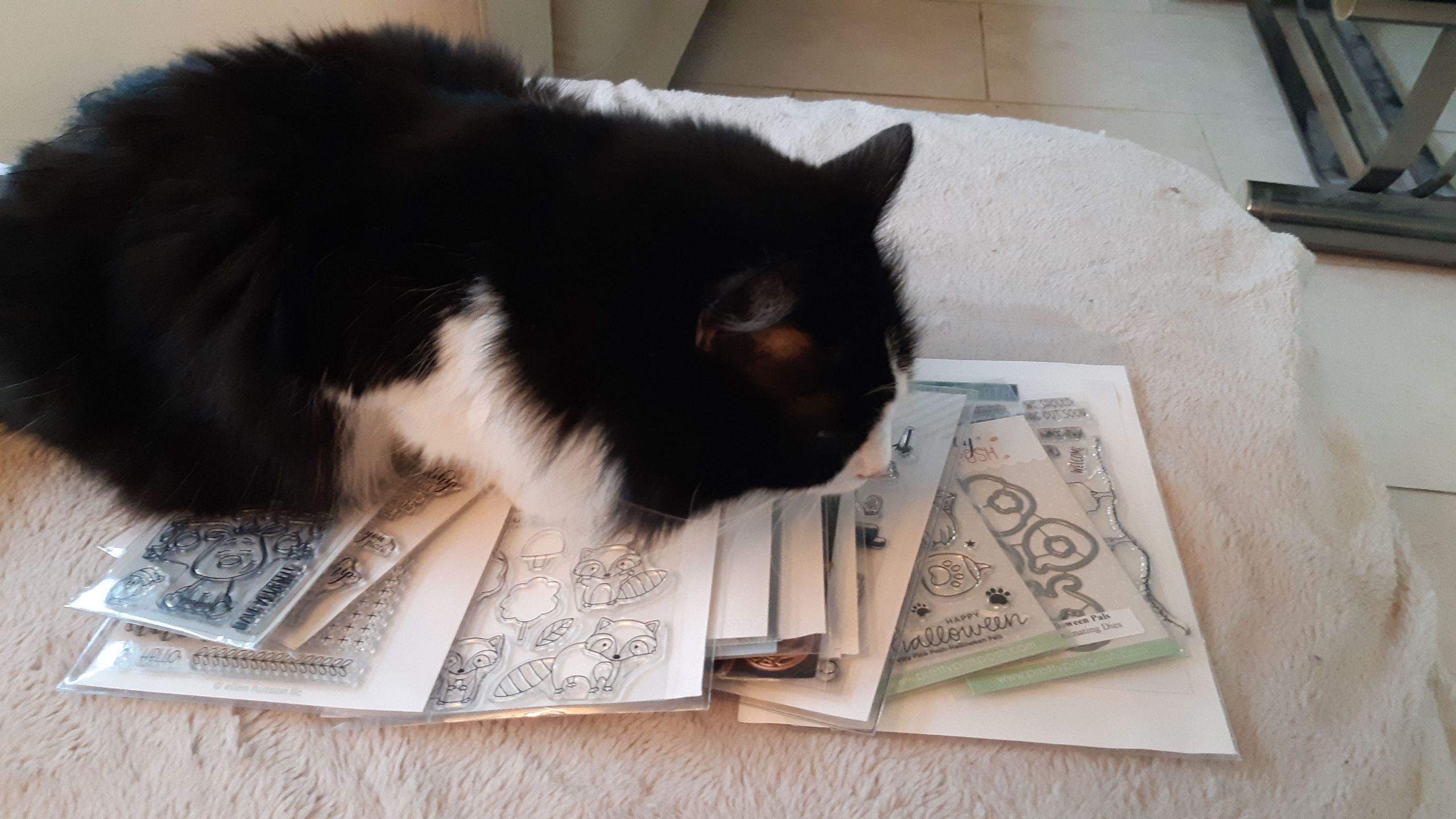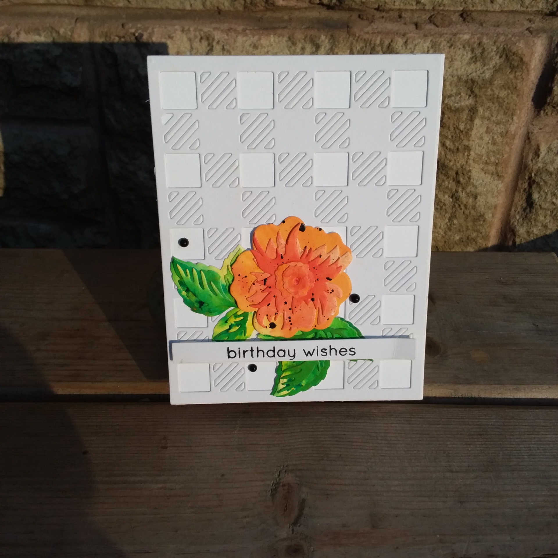 I used Distress Oxide in three purple colours for the background – no water splatters this time.