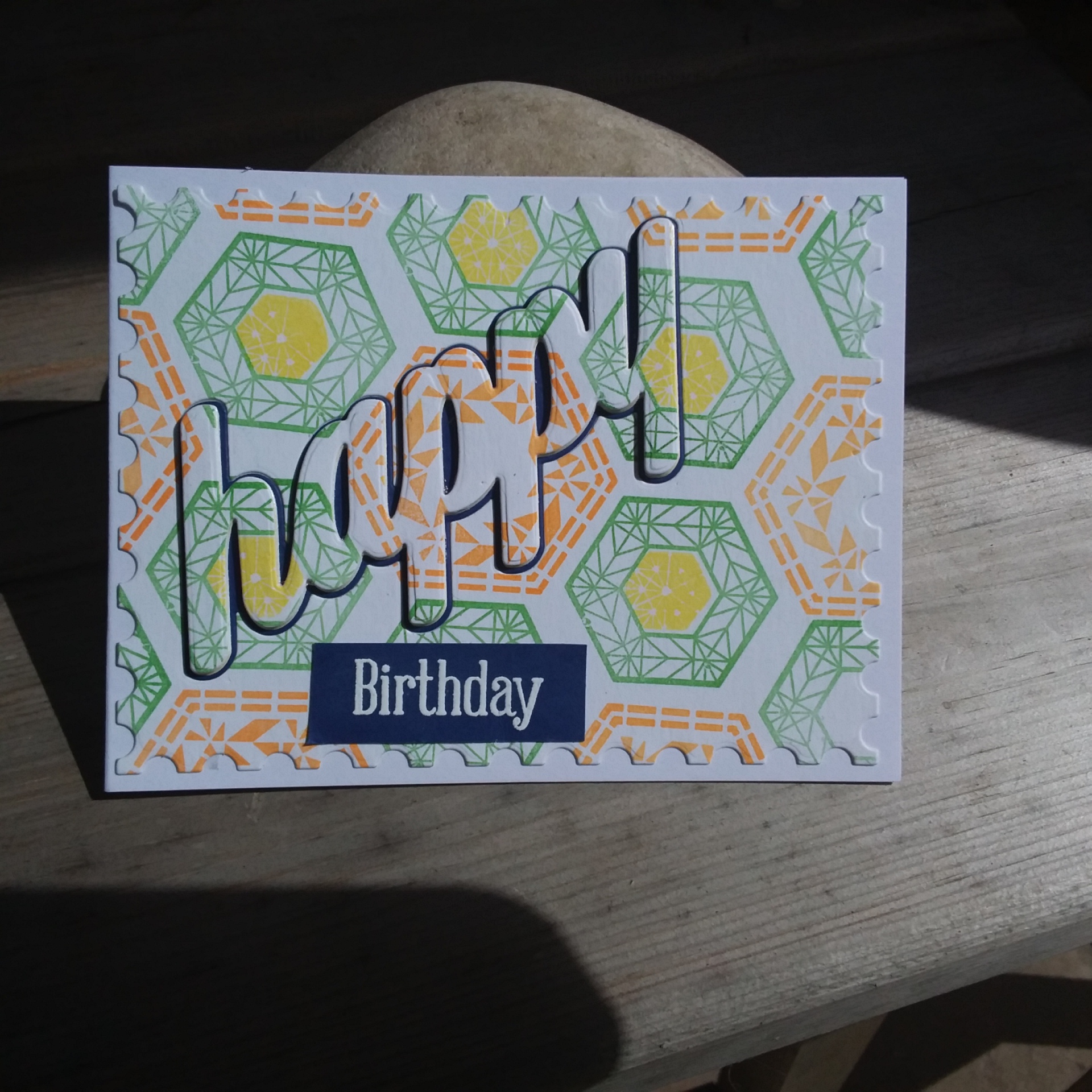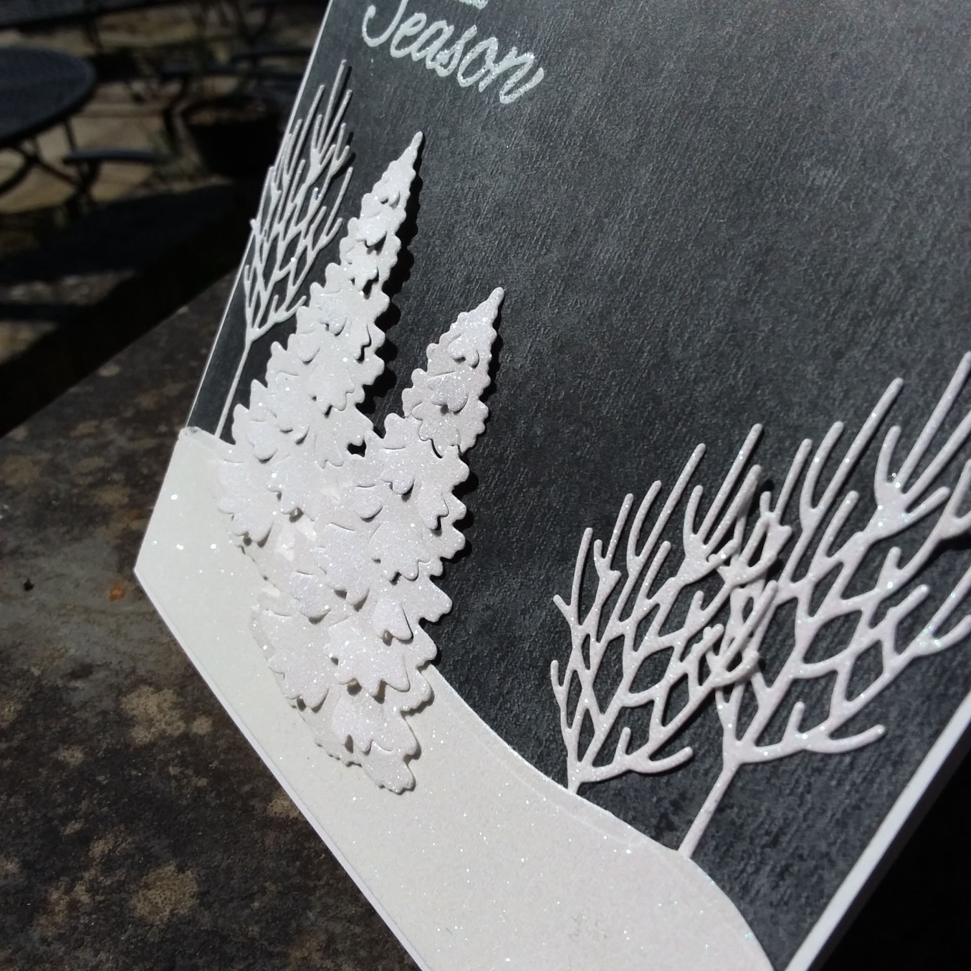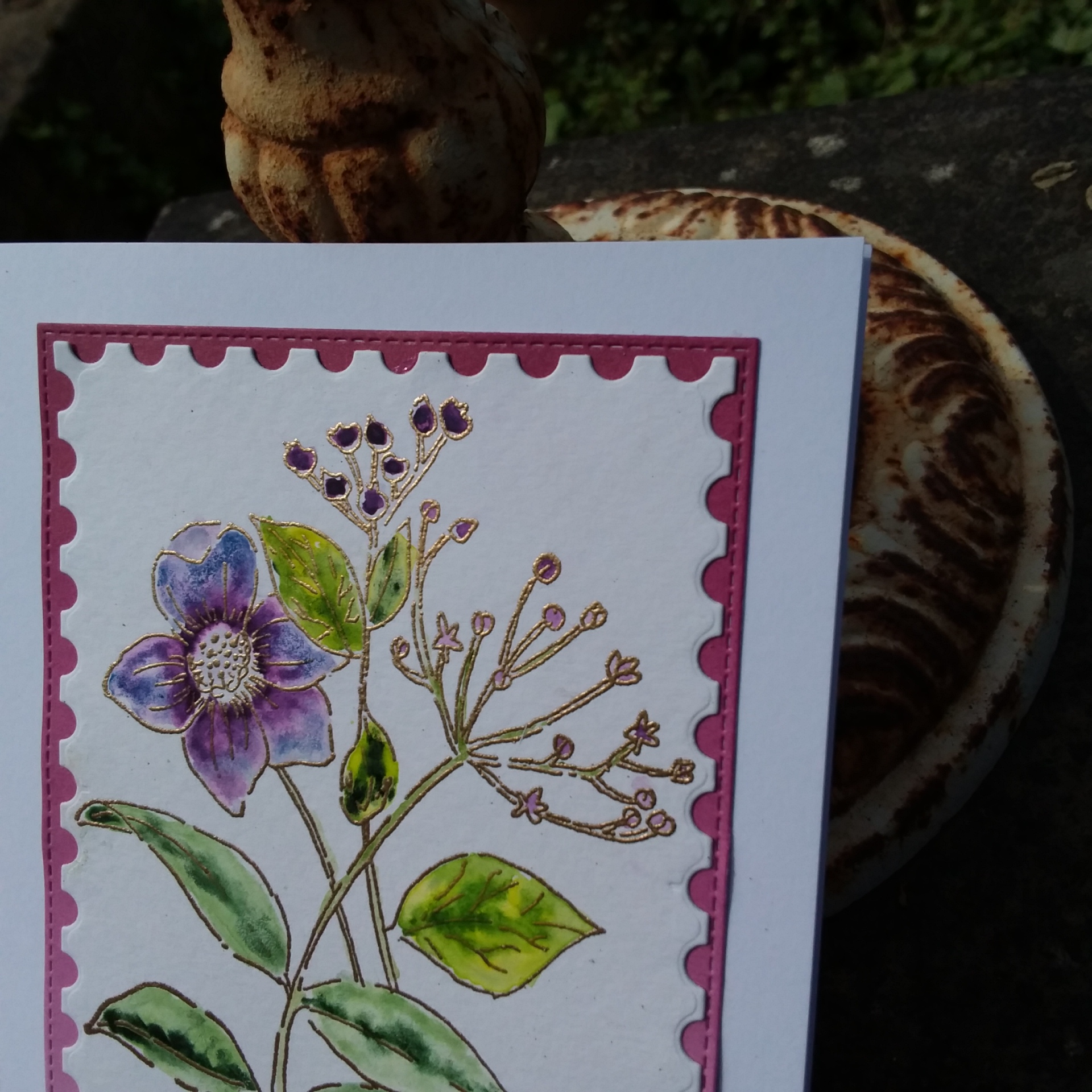 I die-cut the butterfly, then thought about the card base….and thought….then realised I had a delivery of the new Stamps By Me die sets just sitting there waiting to be opened. So – this is one of the dies. A huge die – I mean huge – 8 inches square…..three passes in my Big Shot Pro – despite a shim (should have used the Gemini!!) and I stuck this down to a white card base.