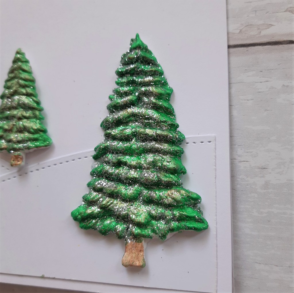 I used the fir trees mould, some air dry clay, then let it dry until the next day. If you know me – the waiting is the most difficult part – so I made quite a few models of different types – and have put them away for future use.