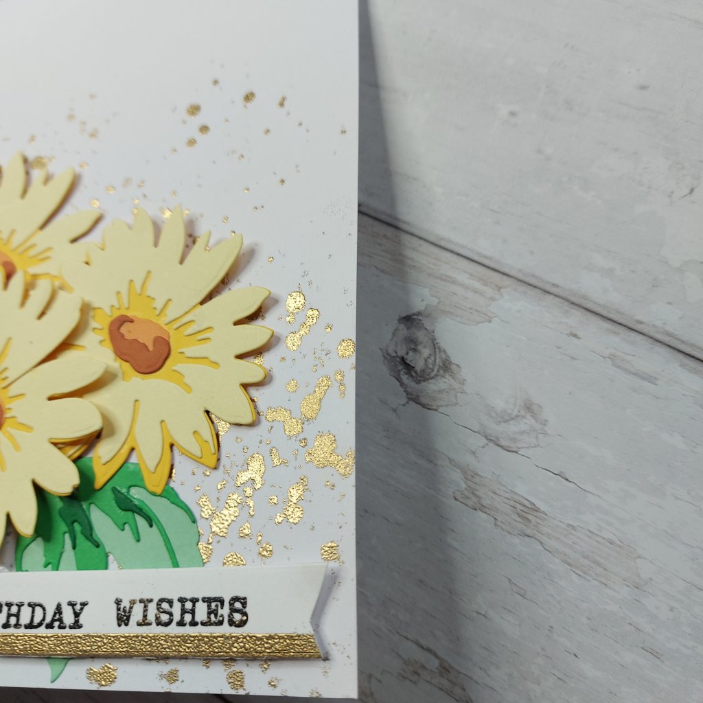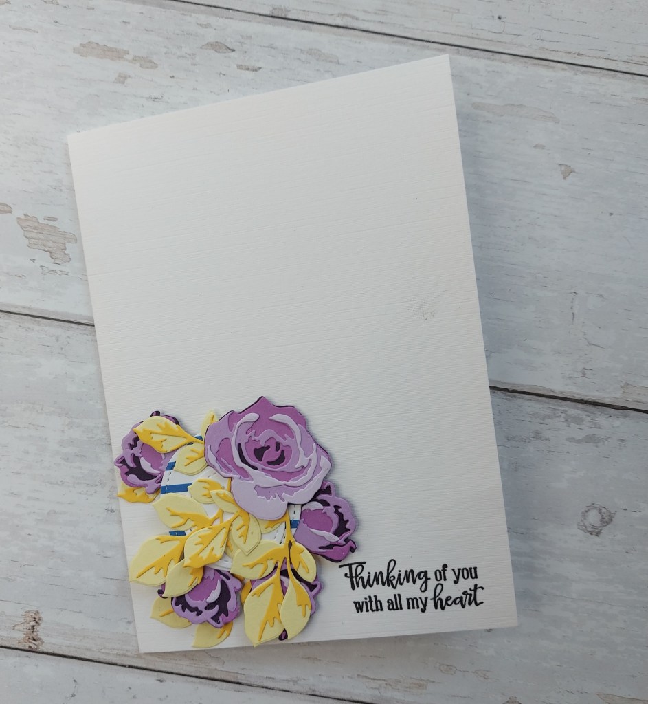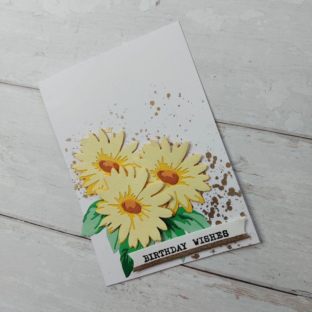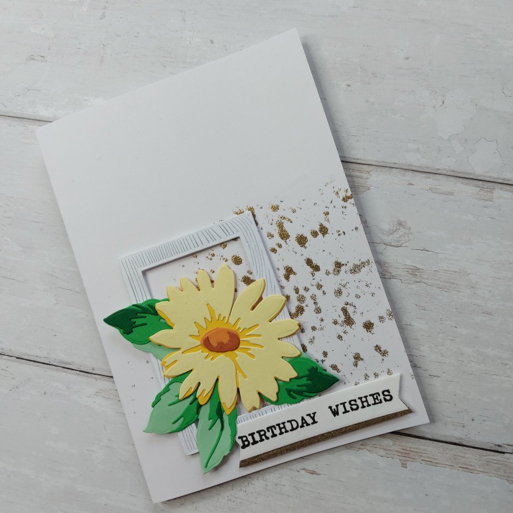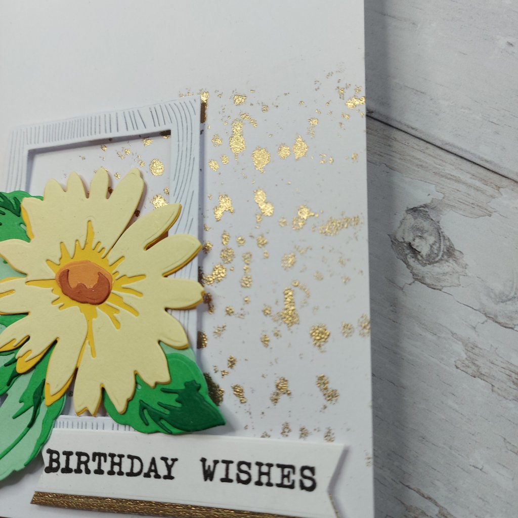 The card itself is A4 folded in half. Why such a large card I hear you say? Well, I knew I wanted a row of butterflies, and to make this work – the card had to be larger than usual, especially if I was also adding the larger butterfly die-cut too.