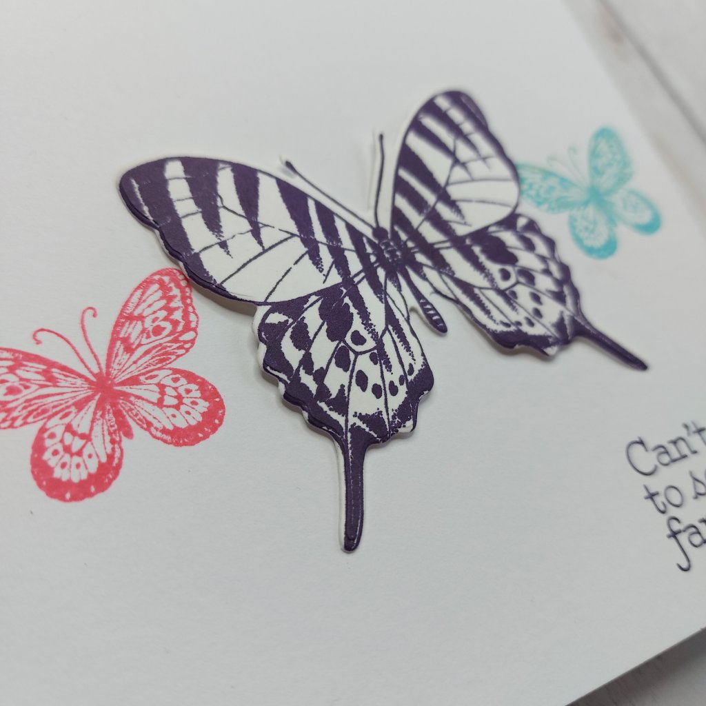 Another encouragement card, clean and simple, the large butterfly is the only layer to it – the rest stamped onto the base card.