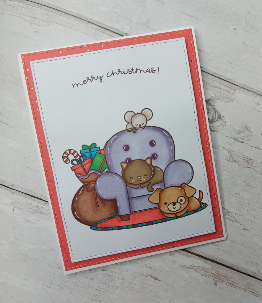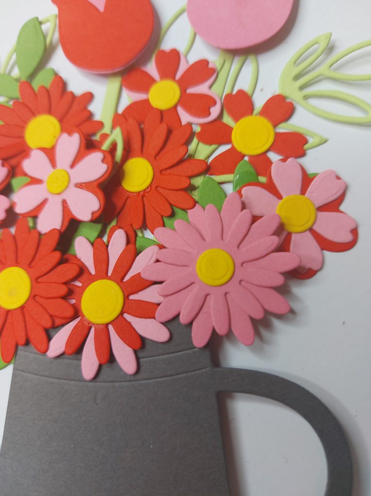 I coloured the six parts, then drew a black dividing line between each, and die cut with a stitched circle.