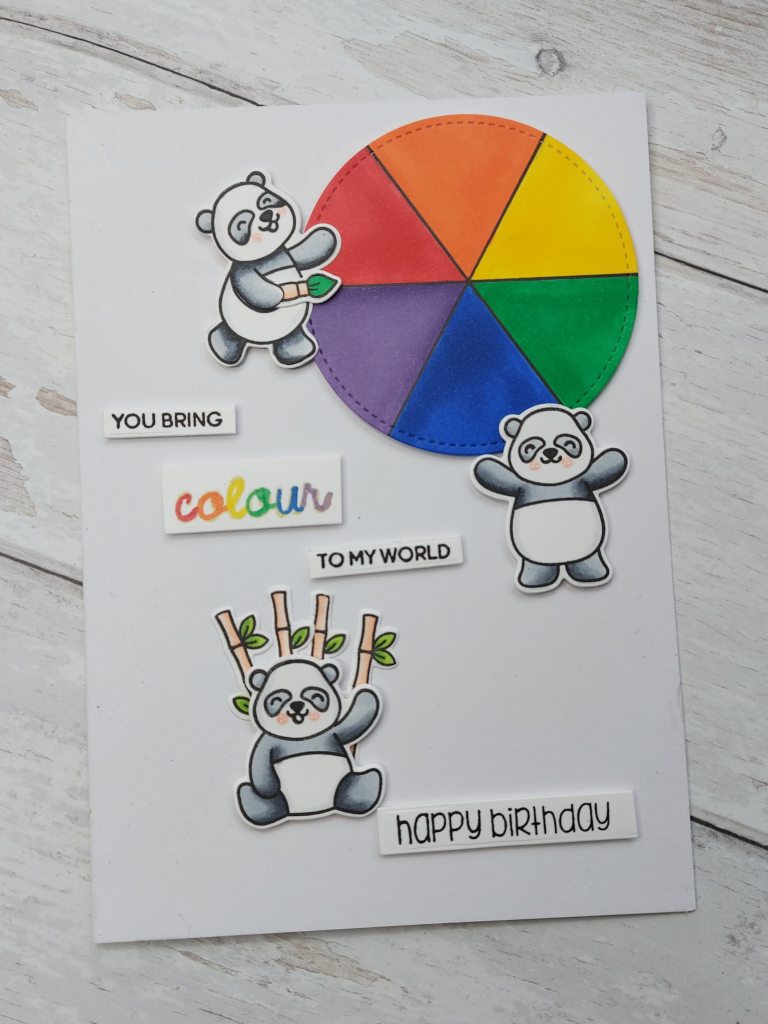 MY ‘wheel’ is obviously the Colour Wheel – a slightly reduced colour scheme – I thought 6 colours would work for this…and with the pandas being black and white – well – I thought it would work quite nicely.