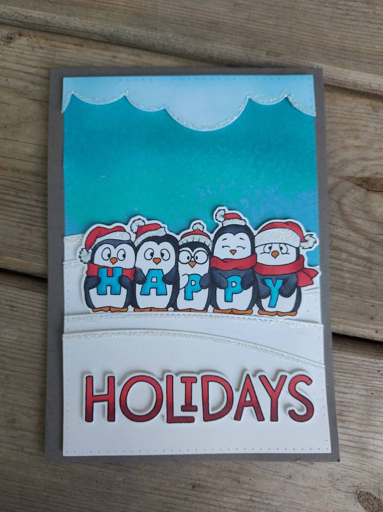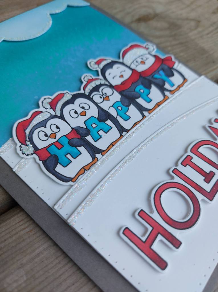 The cute penguin image is from Gerda Steiner, coloured with Copics, with the sentiment from the same stamp set.