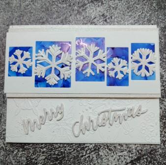 The background blue panel was using some Spellbinders ‘Silks‘ recently obtained as part of a virtual crafting kit. I’ll need to play with them more as they have a really clear shine – but I think I watered it down too much. Whilst this was drying I turned to the snowbanks.
