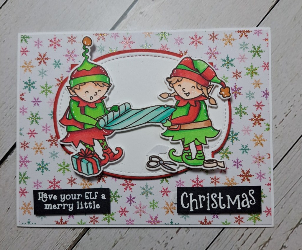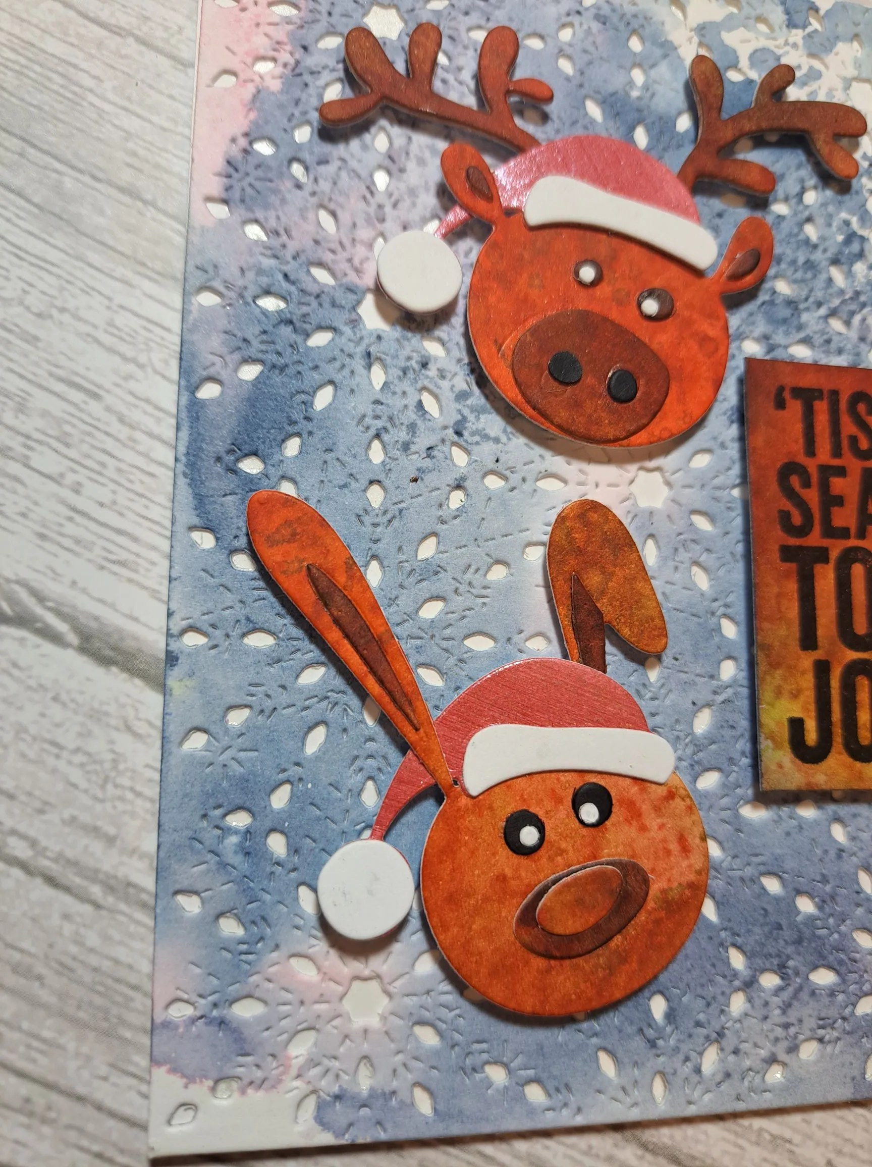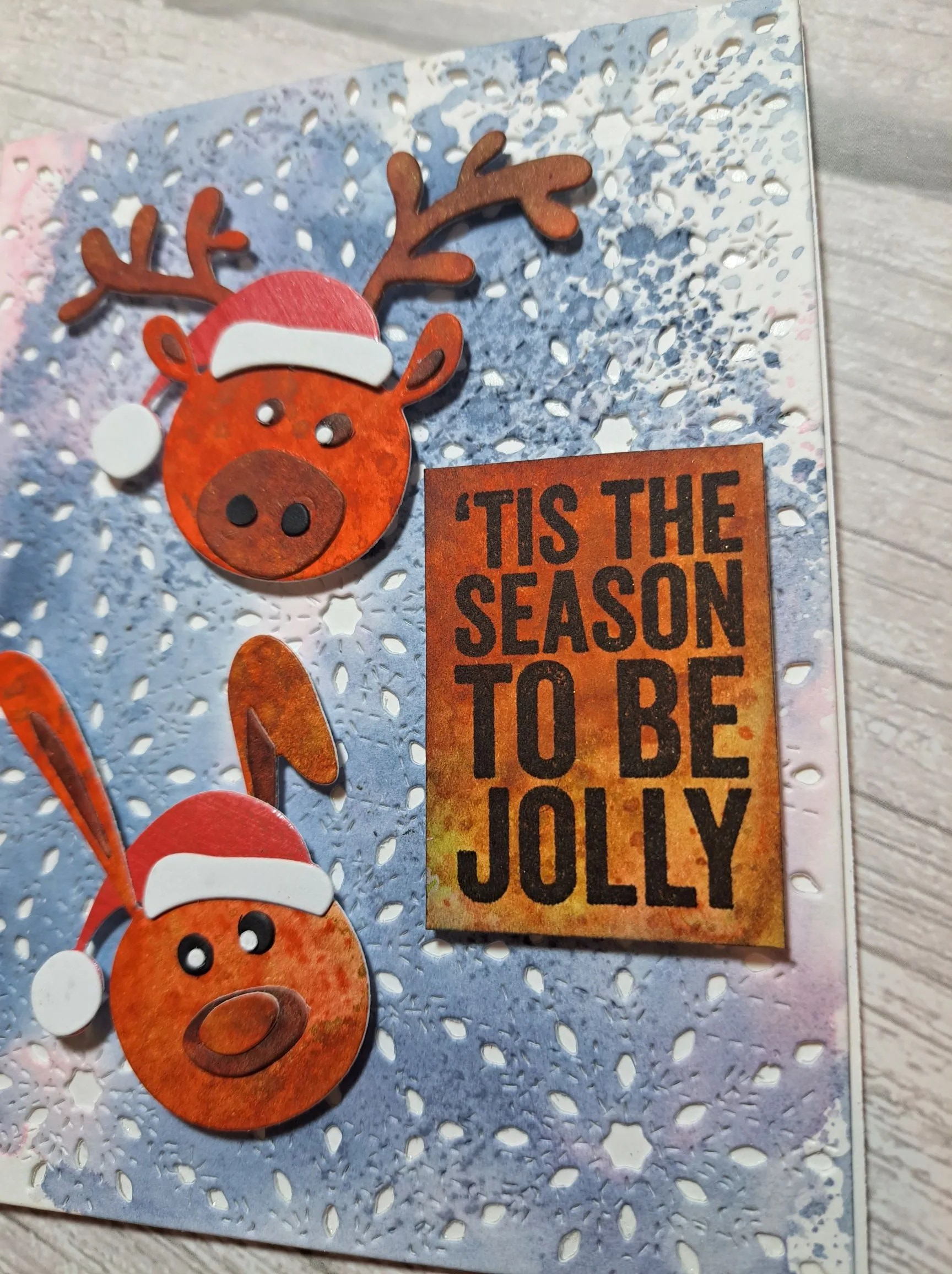 The white pierced frame is also from Spellbinders – part of the event kit – and I used one of the three layers this die cuts out. This was attached with glue to the grey panel.