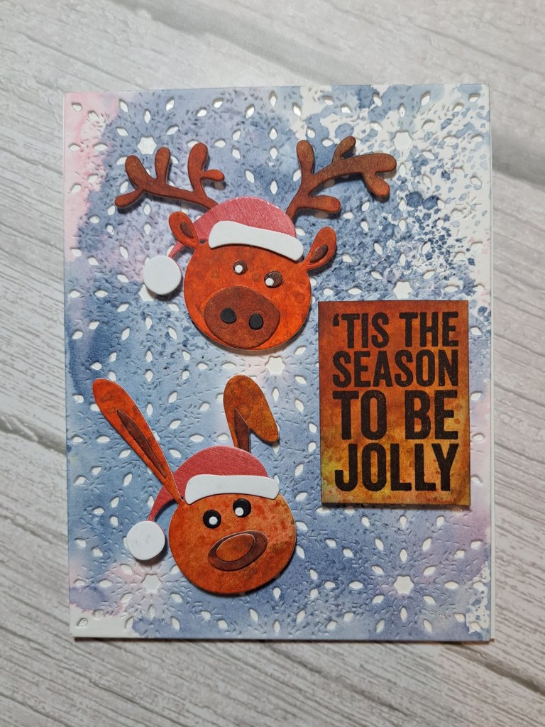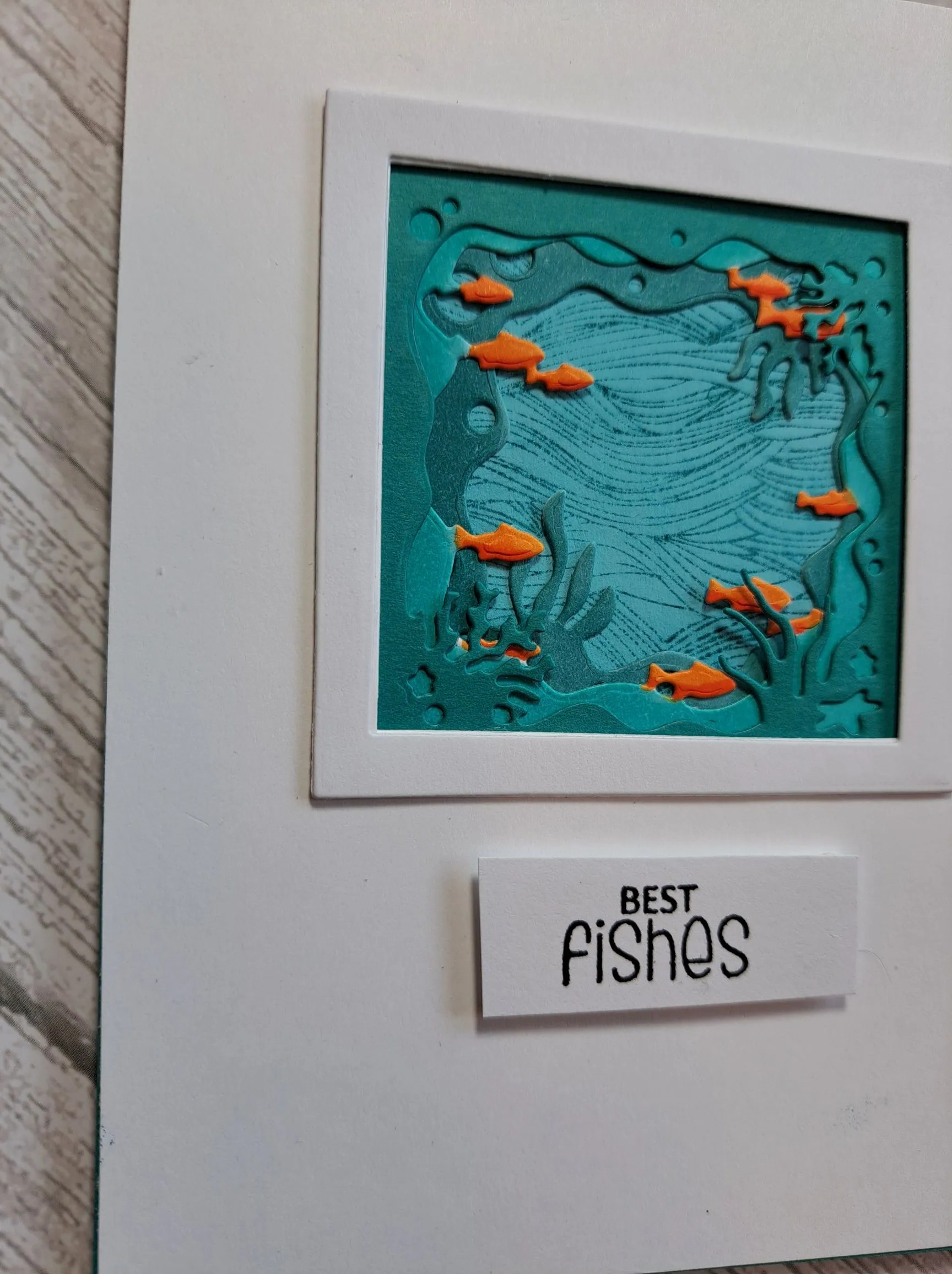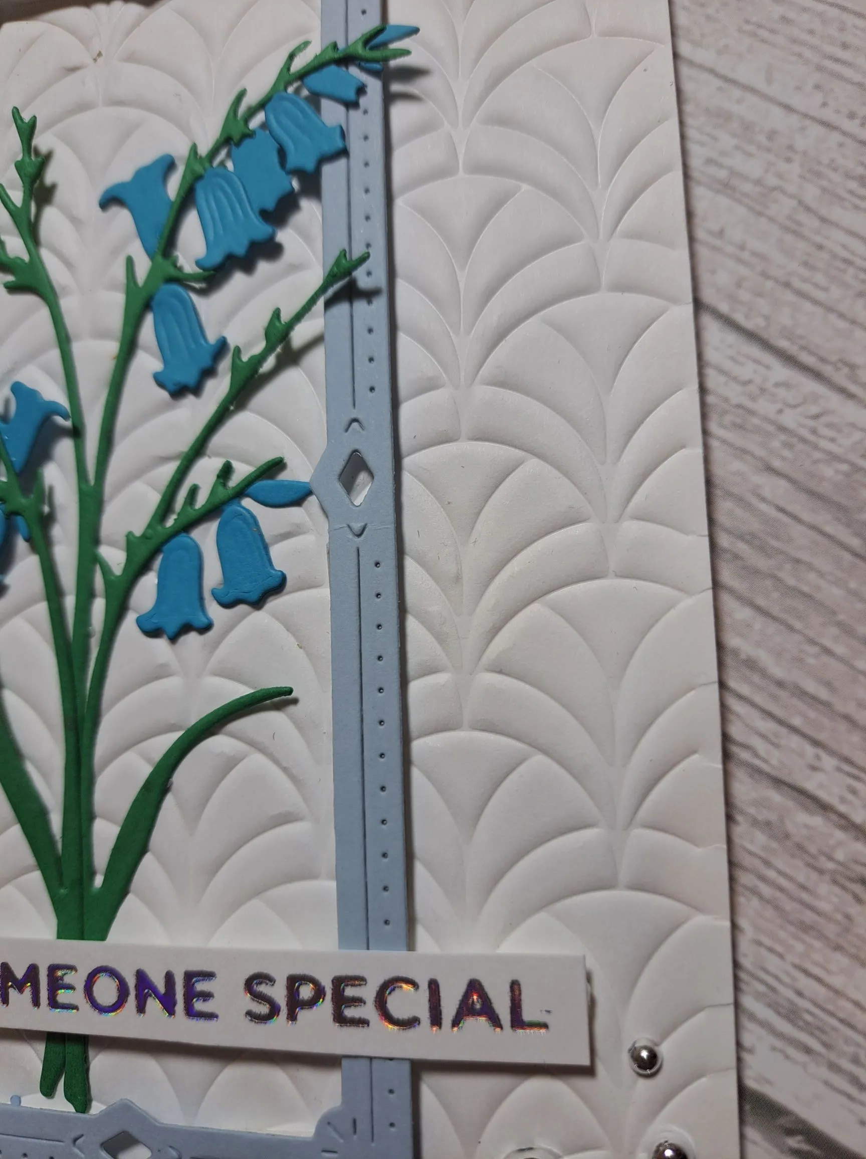 I dry embossed a grey panel with a Spellbinders embossing folder and attached to a card base.