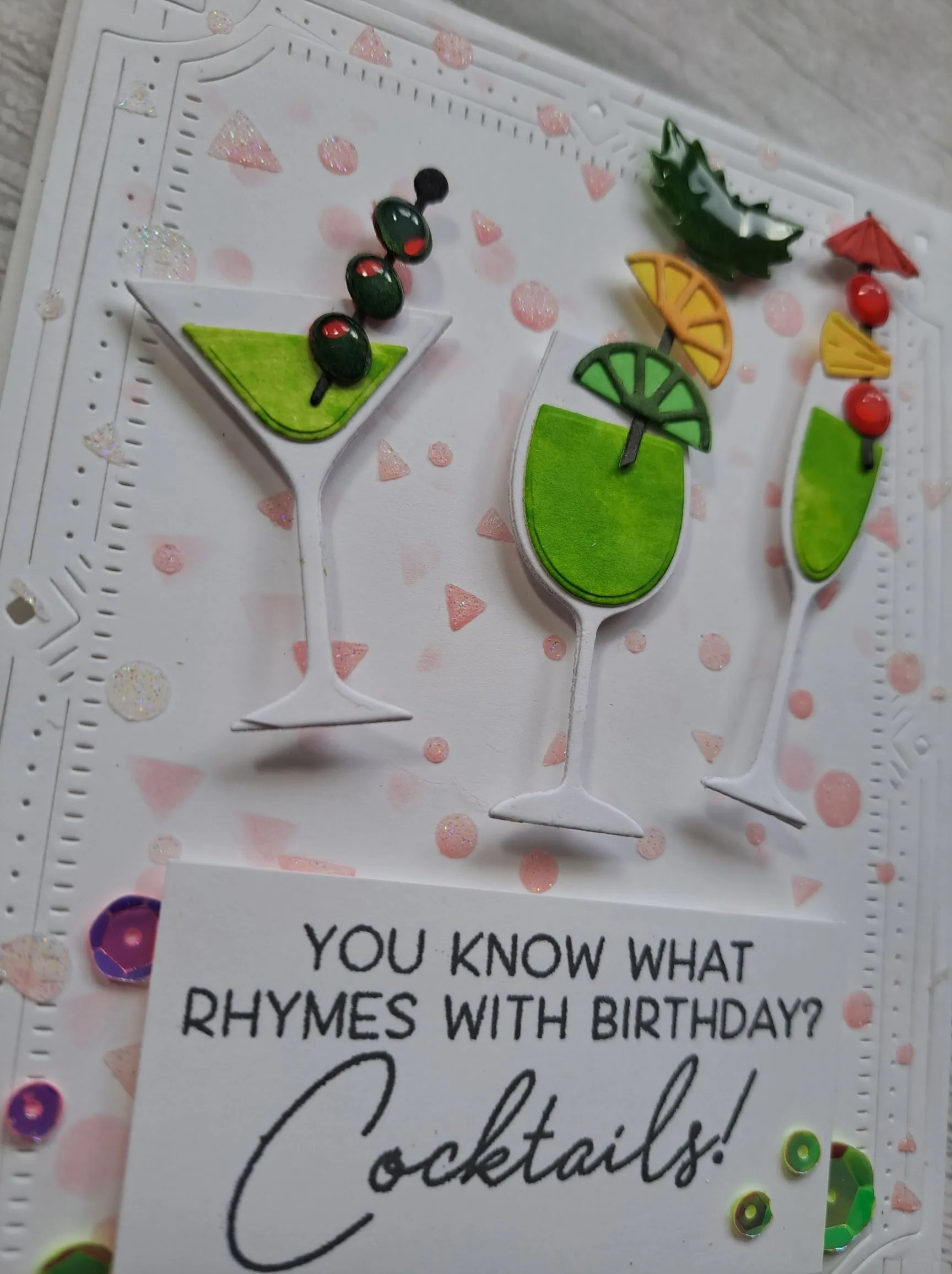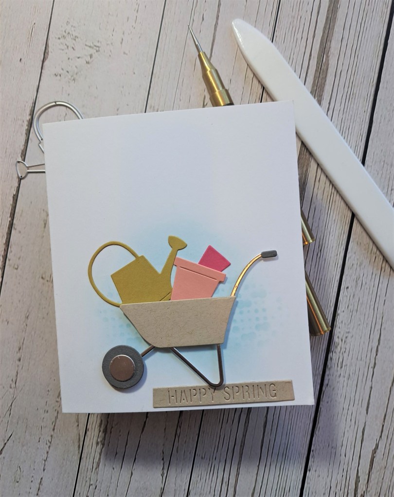 The small sentiment is white heat embossed, and die cut with it’s matching die.