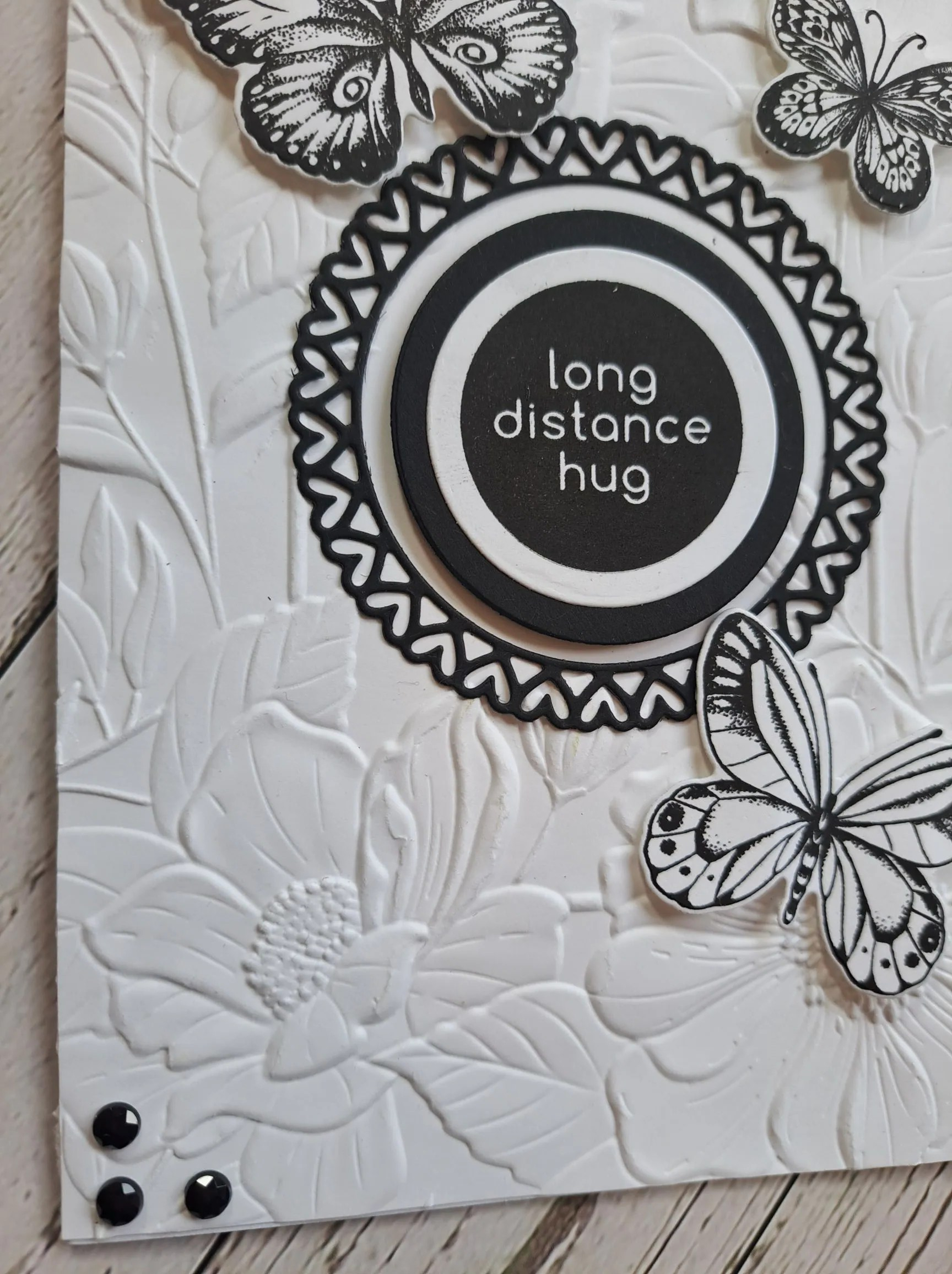 The stitching die is from Spellbinders, and the layers die cut out of white card stock. I wanted the embroidery to stand out.