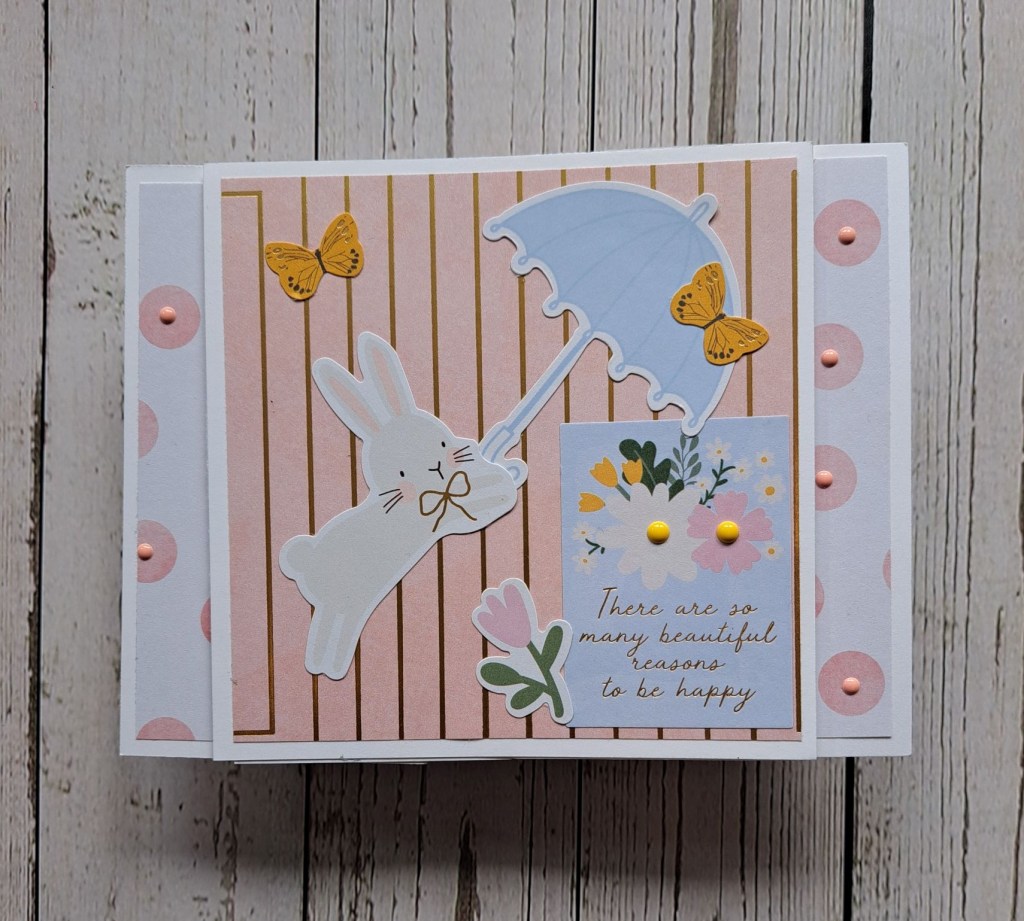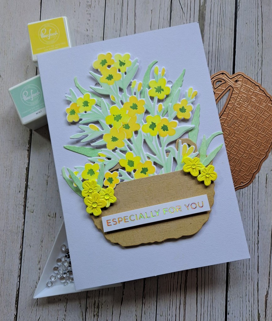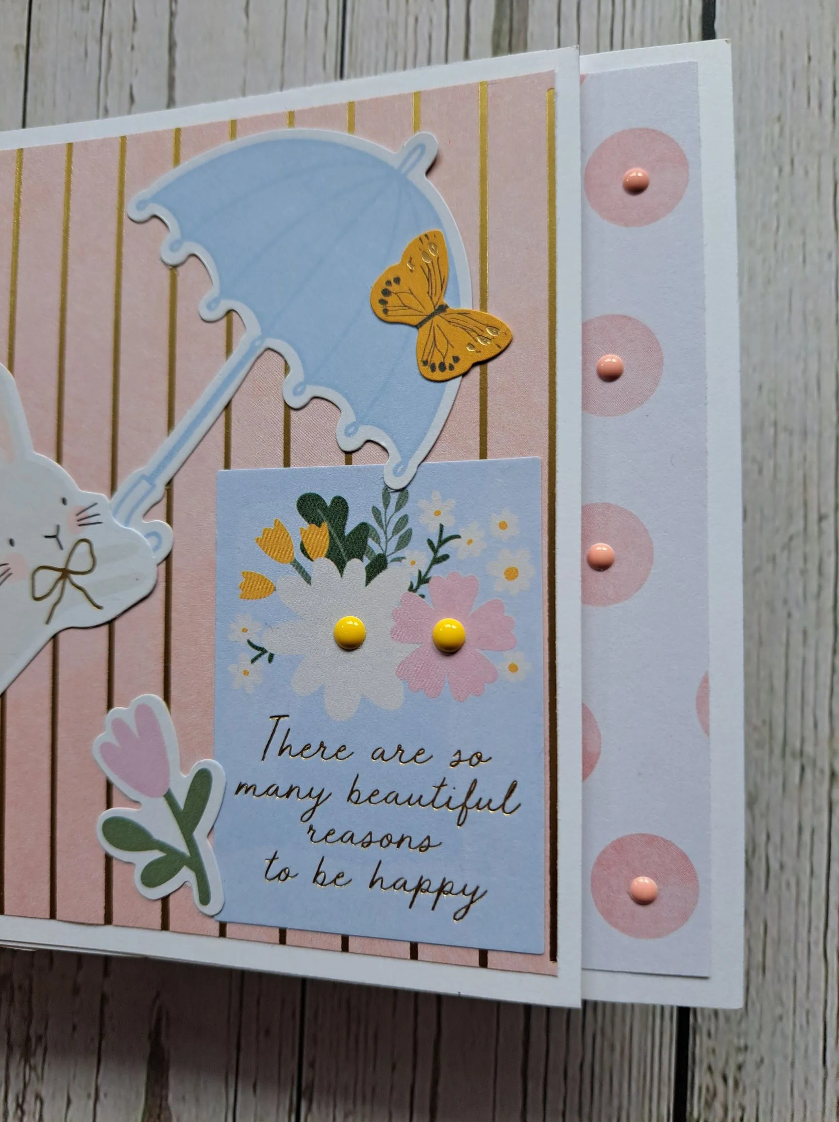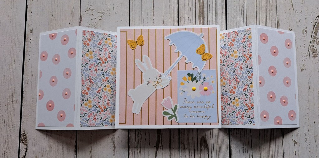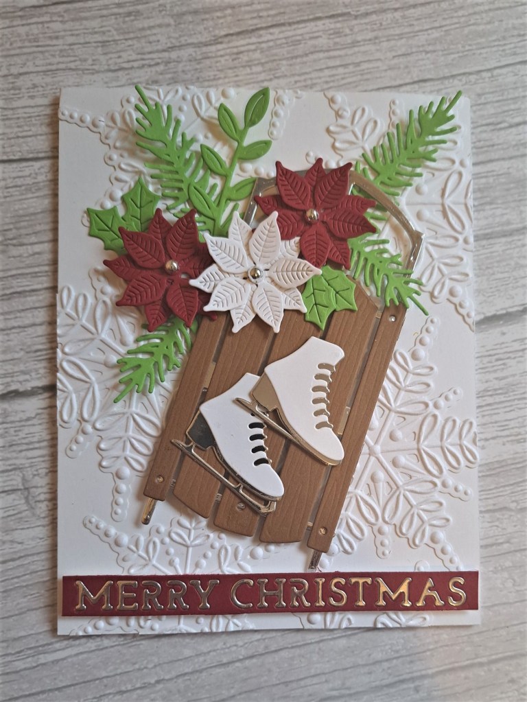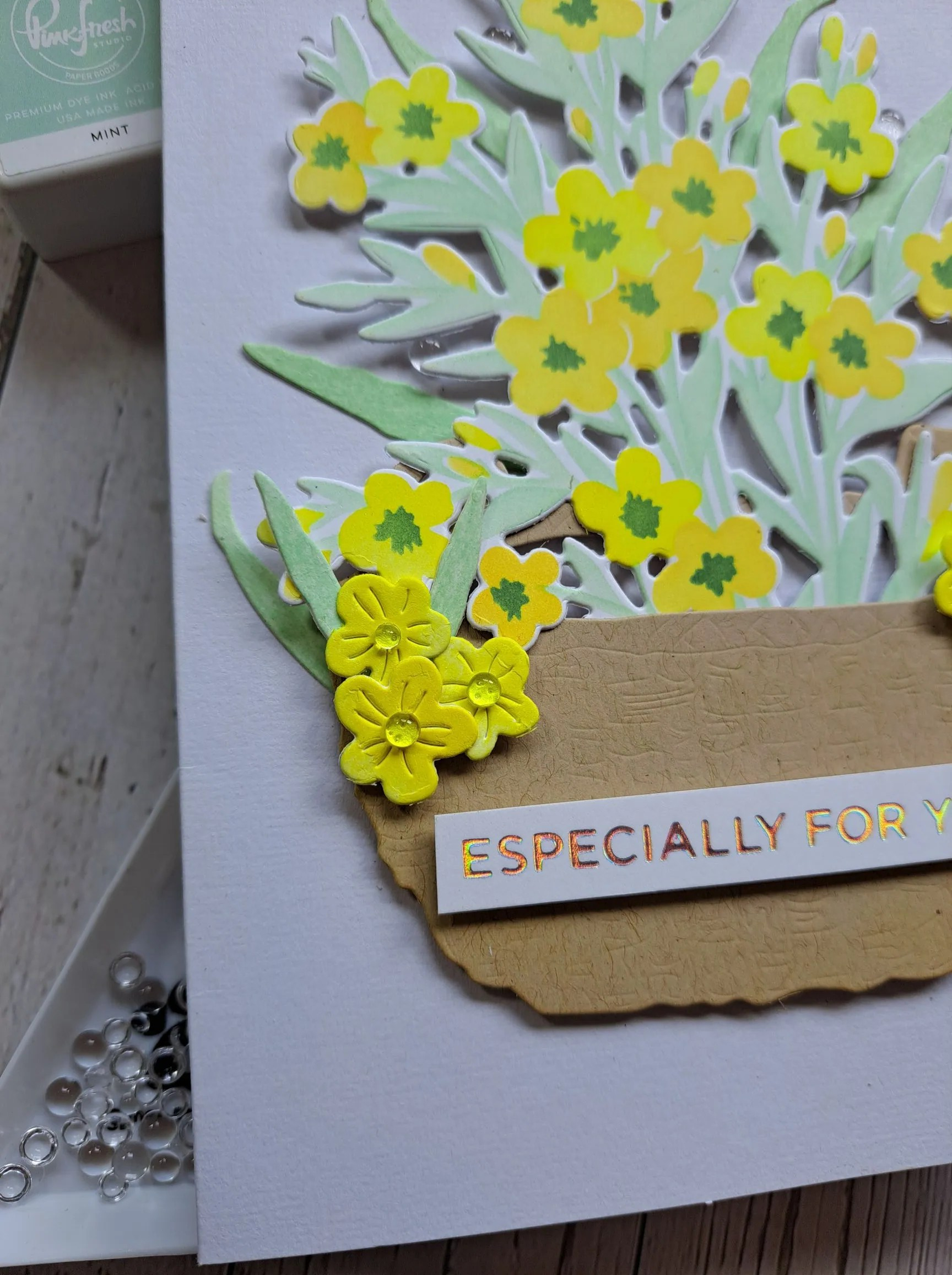 I then die cut some florals and leaves, layered them together and added to the centre panel. I decided to go with a landscape orientation, as I felt it suited the floral dies better.
