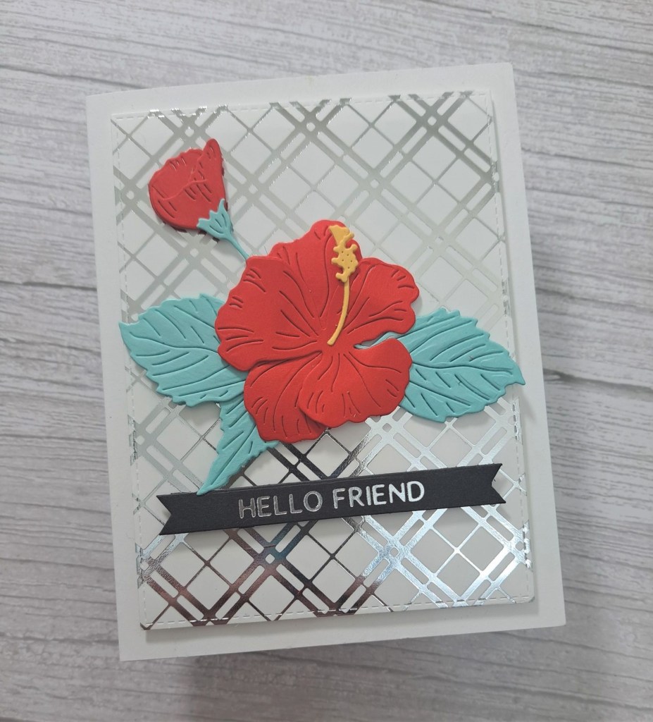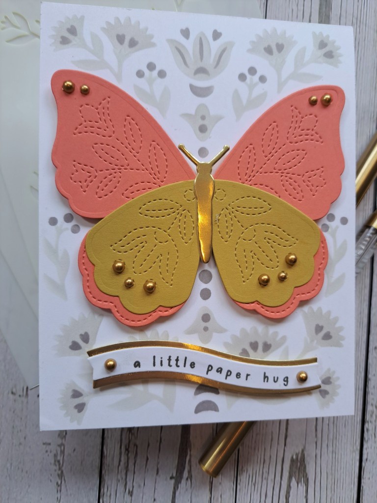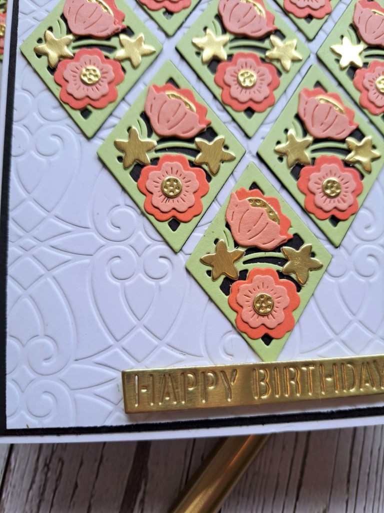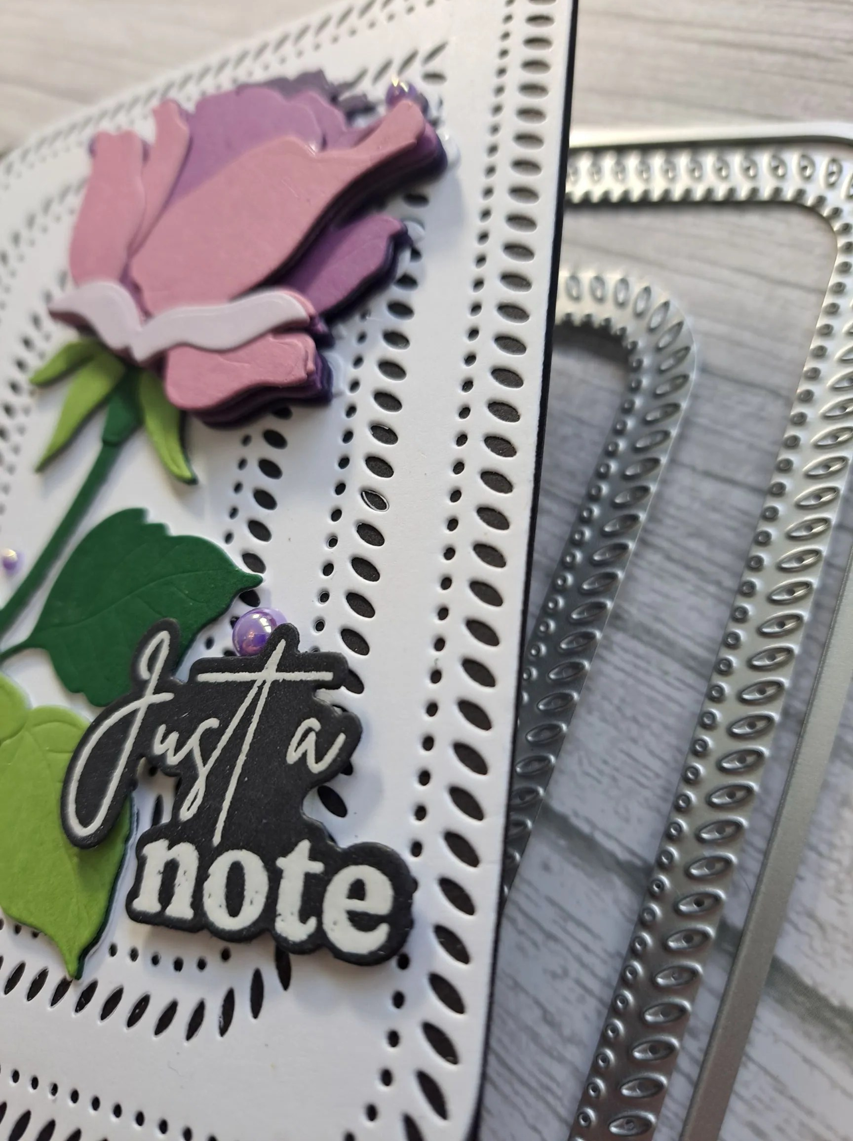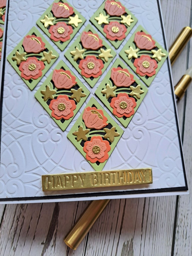 I added a previously foiled sentiment at the top as it seemed to fit better that way.