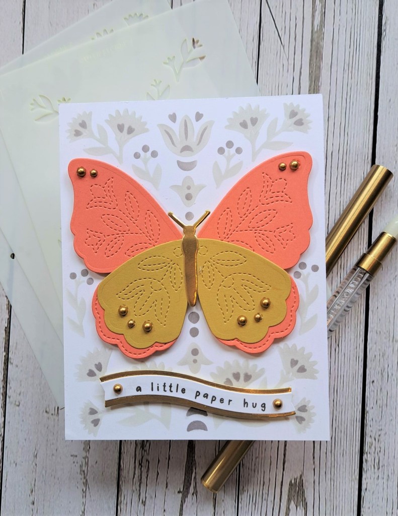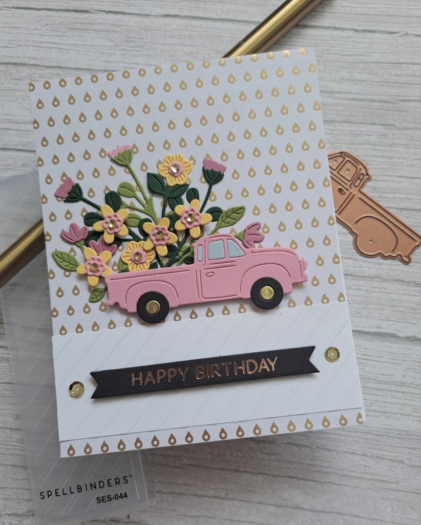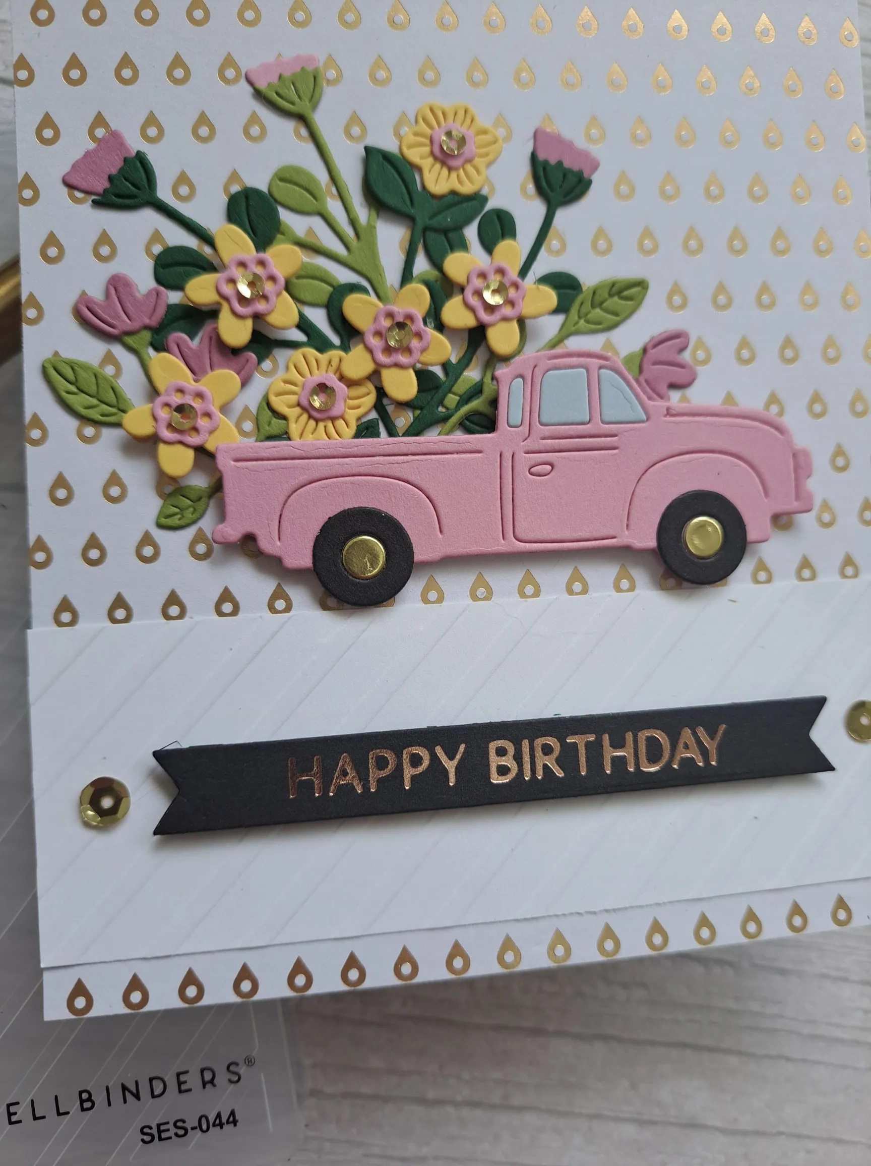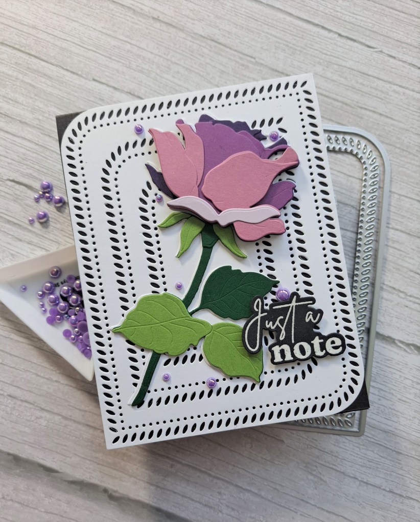 I added a previously foiled sentiment at the top as it seemed to fit better that way.
