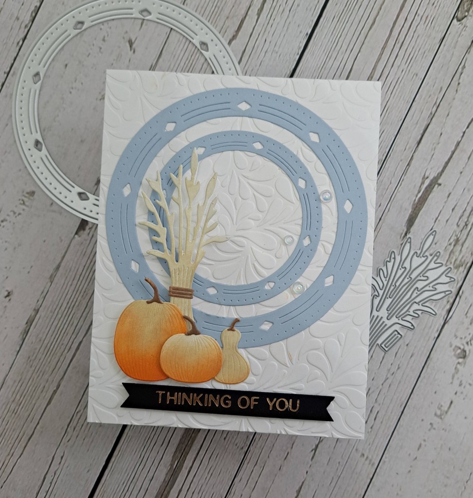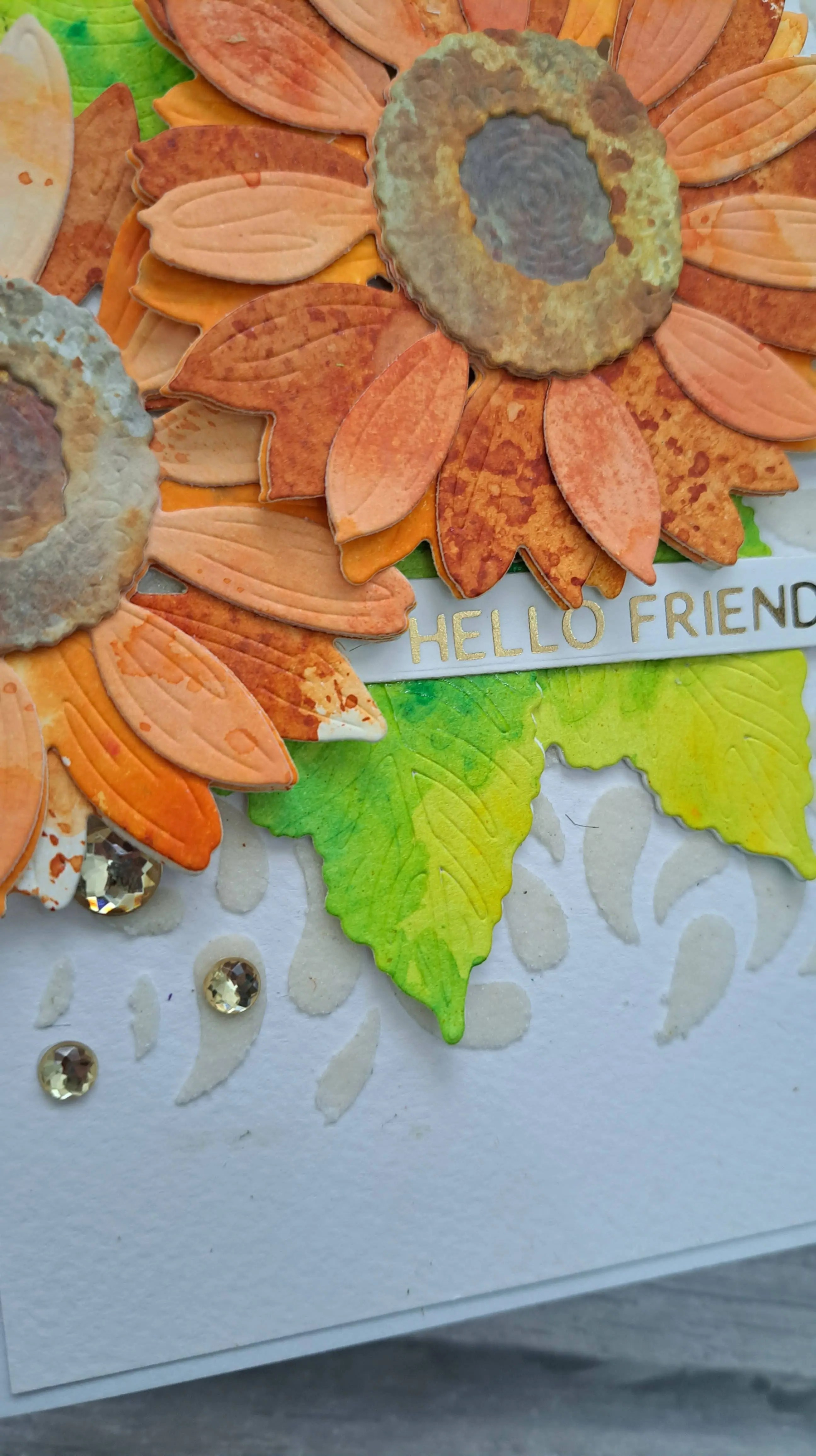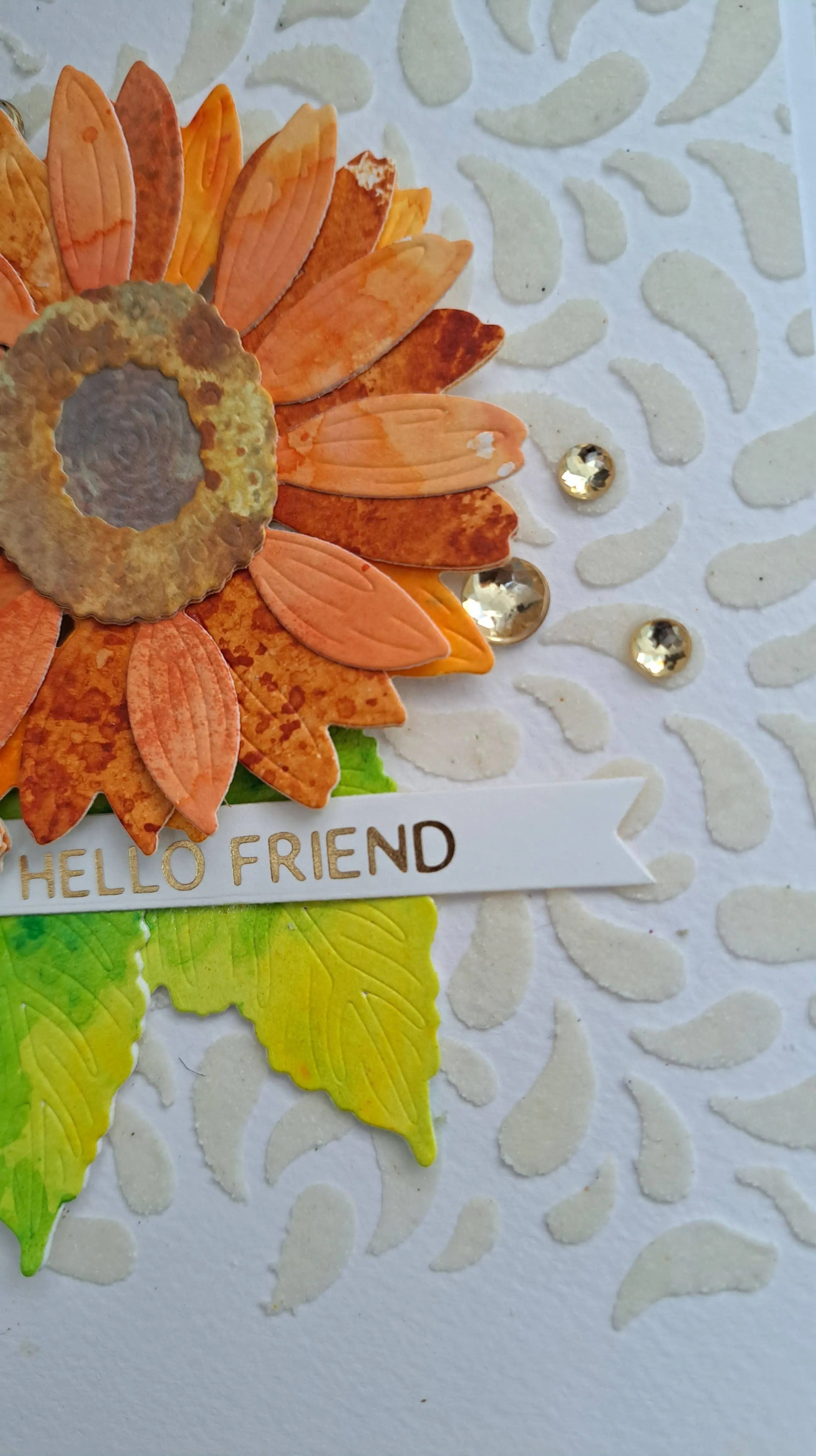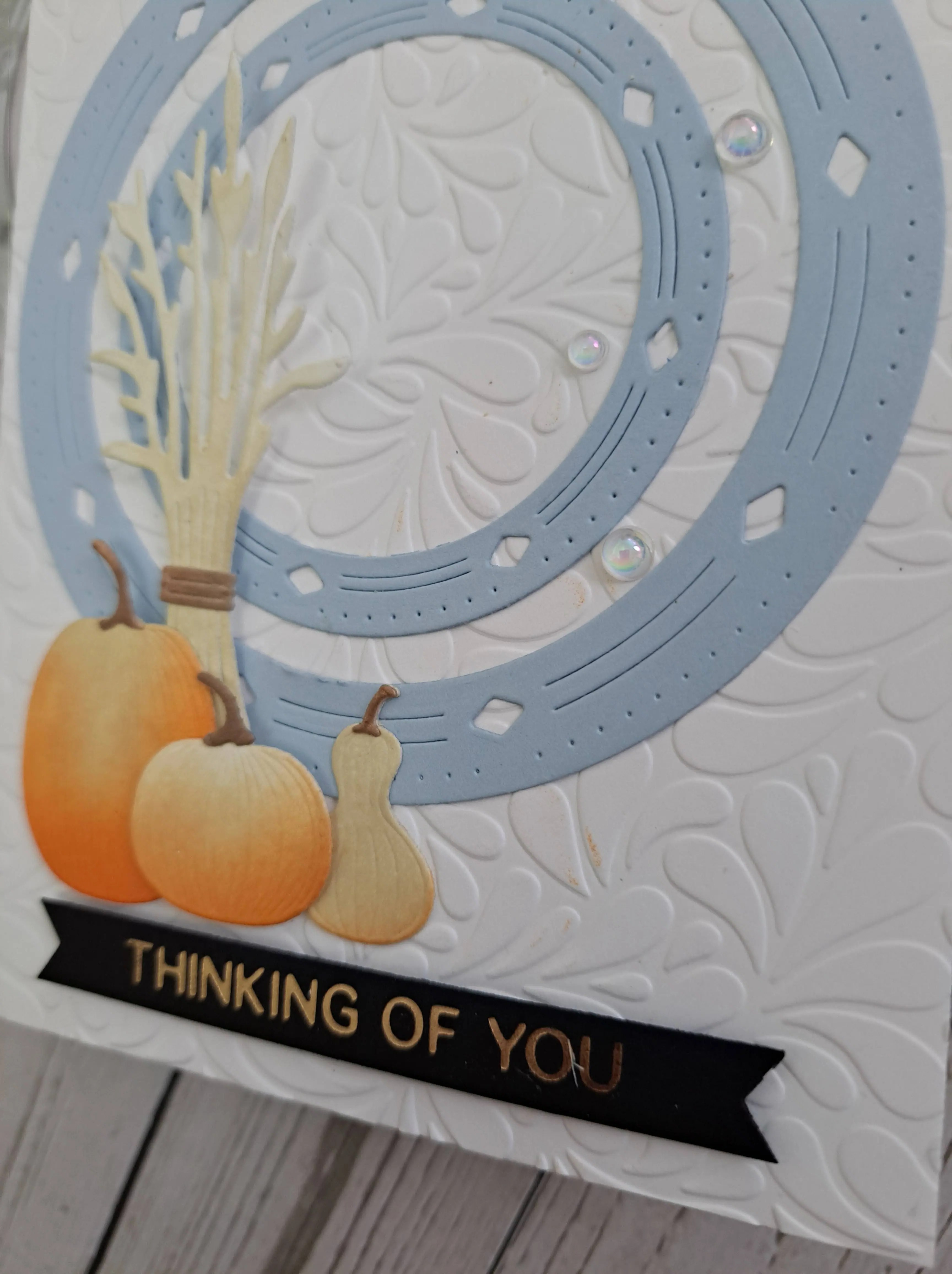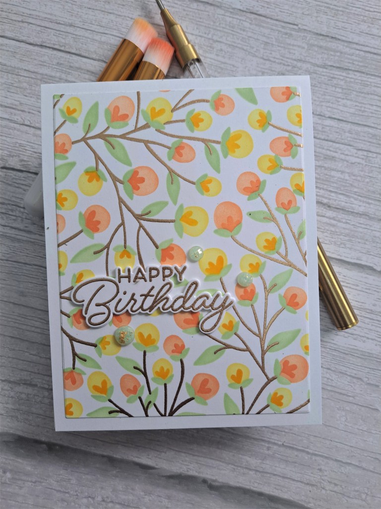 The sentiment was also hot foiled then die cut, and all layered onto a green card base with a thin gold matting layer.