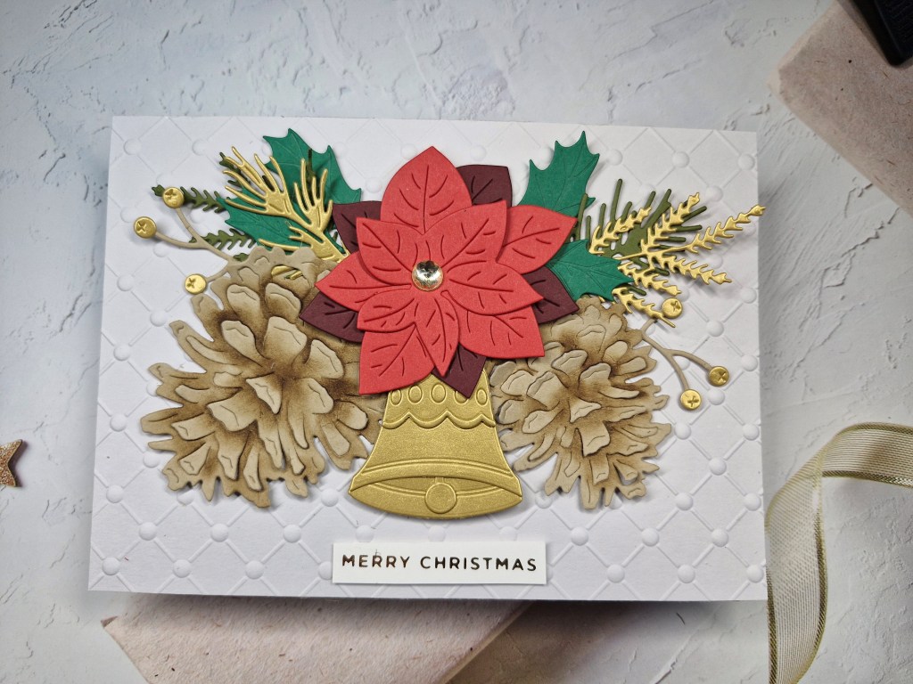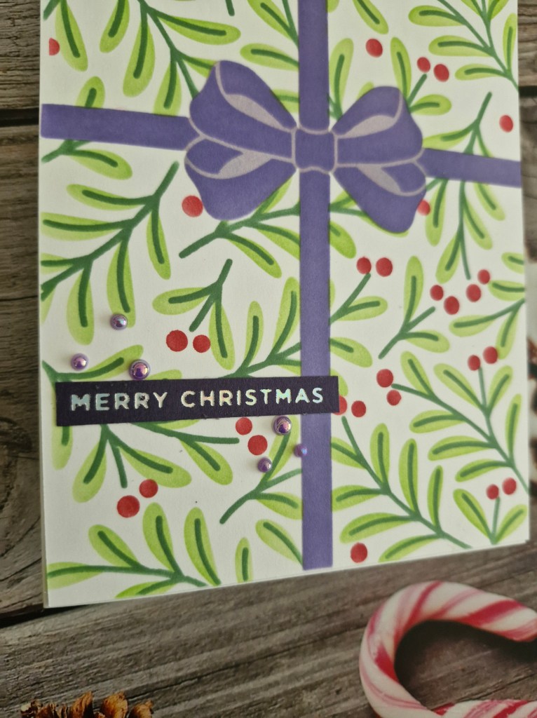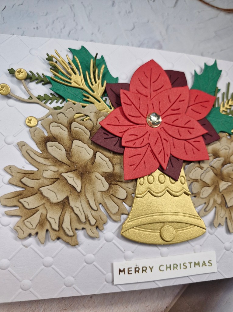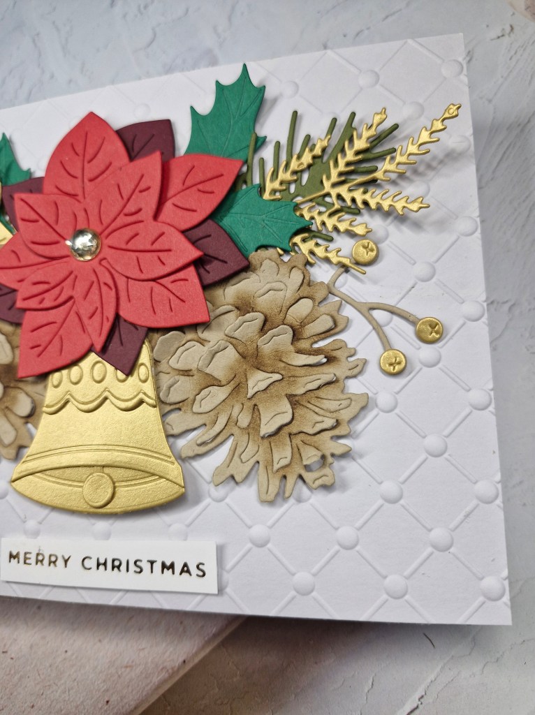 The rounded rectangle frame was stuck to the rear of the front of the card base, then a bone folder used to ‘find’ the edge of the embedder on the front, then a small ball tool to further crisp the edges.