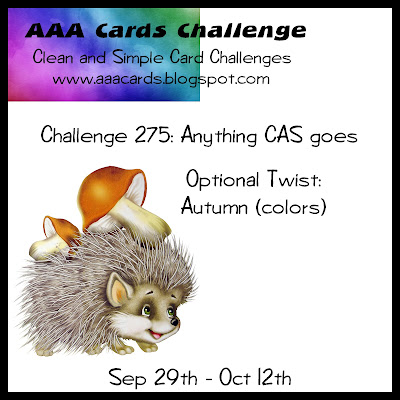 I have created this card for the current challenge at CAS on Sunday and the current challenge at AAA Cards: