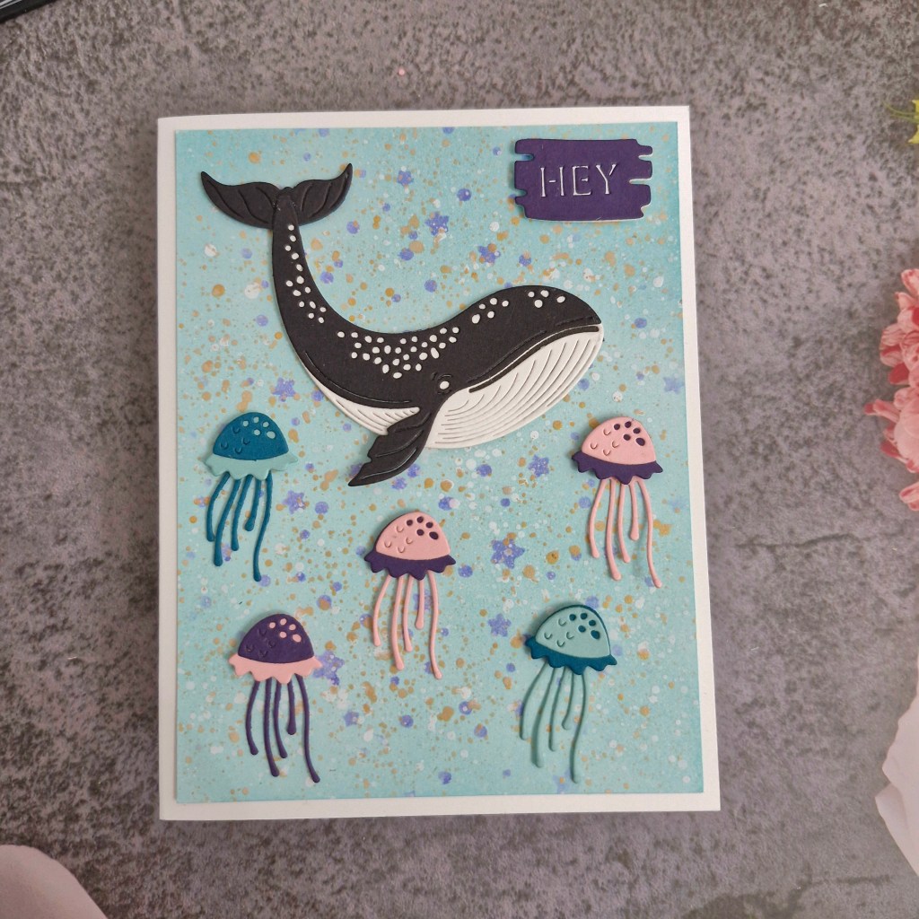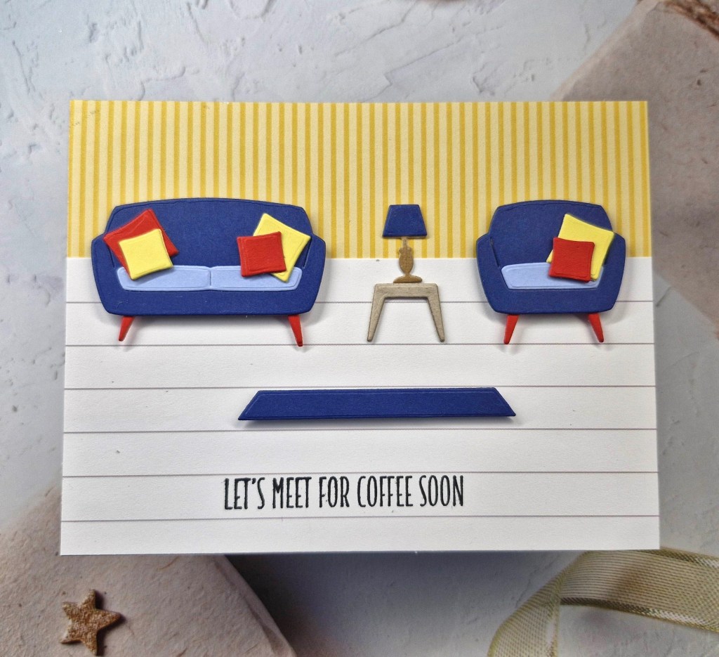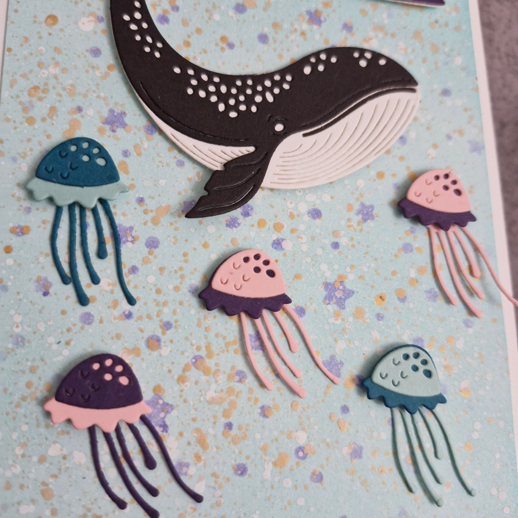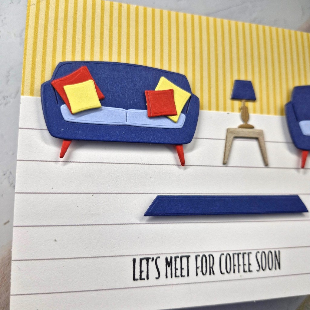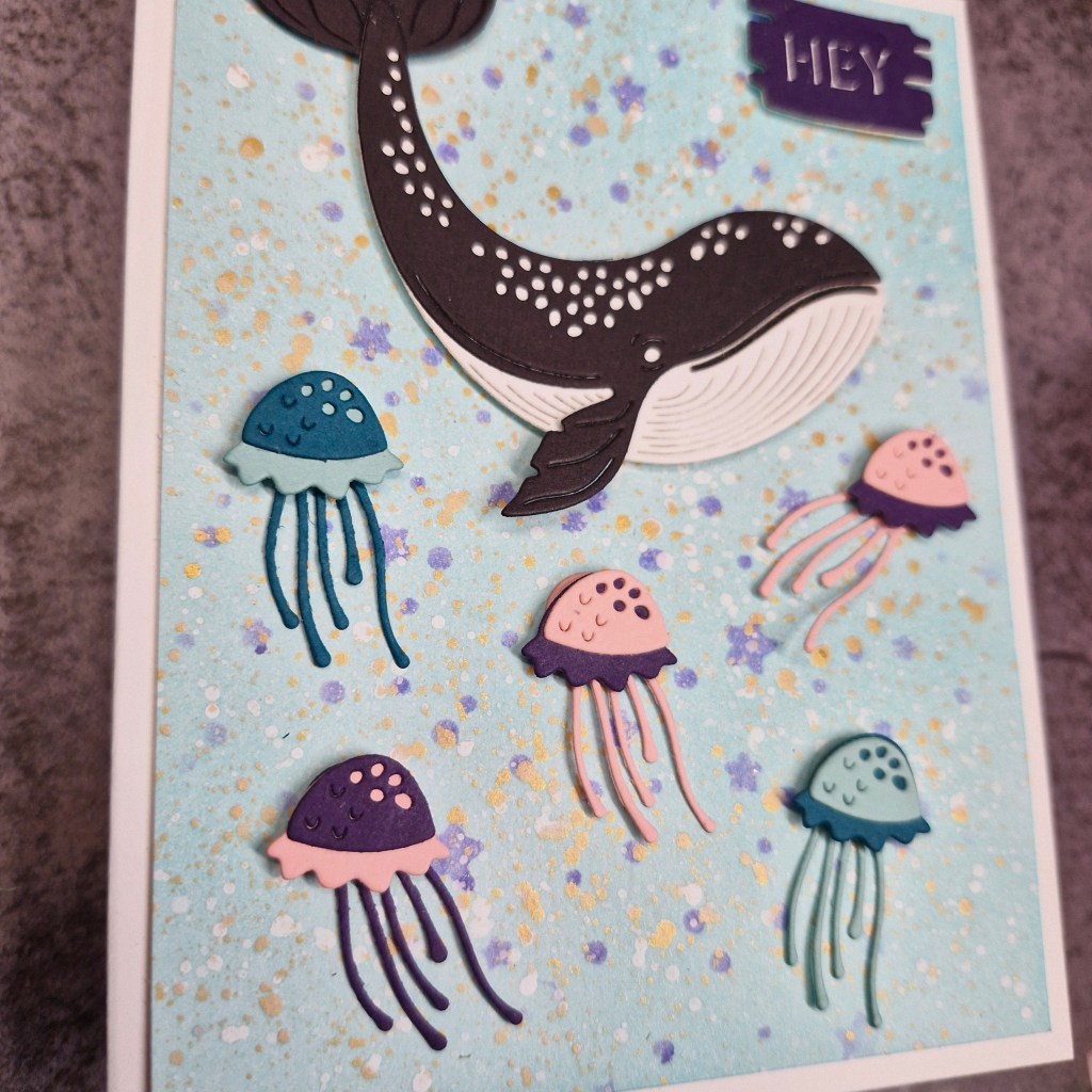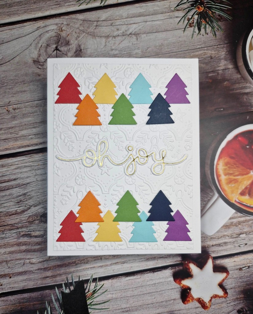 The sentiment is from Lawn Fawn, die cut with patterned paper, layered with a couple more white card layers and glued to the front.
