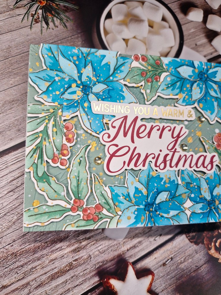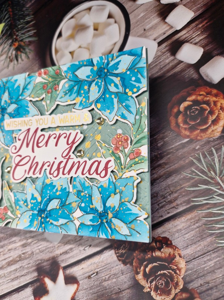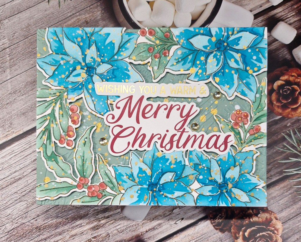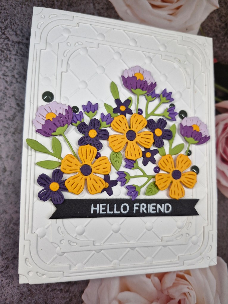 I decided to use a 5×7 inch card base to accommodate the large sentiment with some additional flowers.