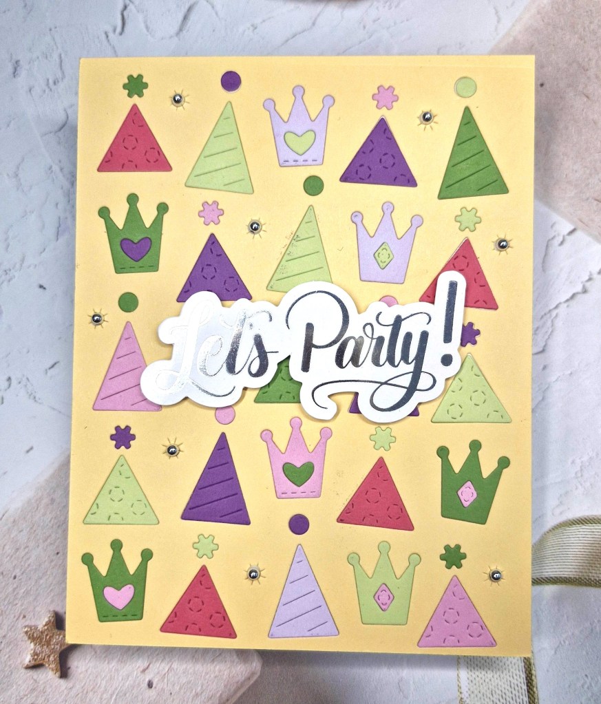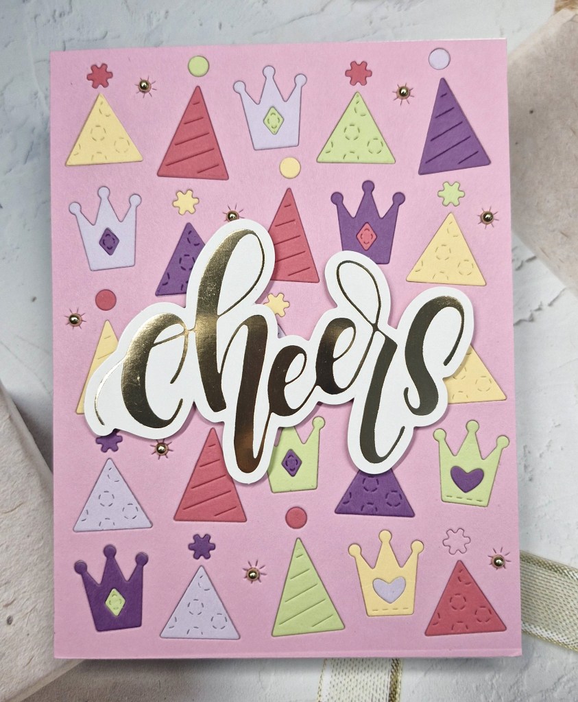As you know, I like to make cards with florals, and the best way to showcase my favourite colours was by using the Concord & 9th ‘Party Hats Inlay’ die. These colours are what I tend to use when I make floral cards using die cuts.