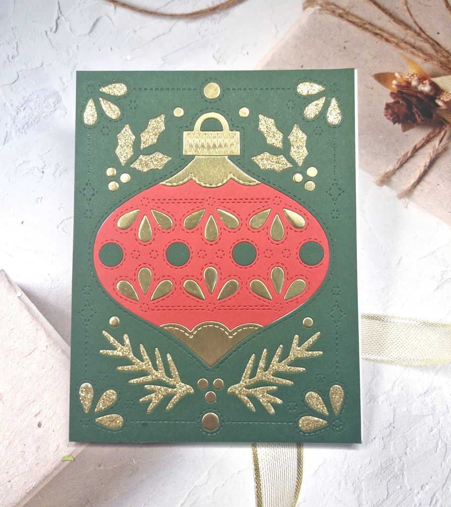 This die set is the ‘Ornament Inlay Die’ and I created lots of colour variations. As I was die cutting from lots of different colours of card stock, and generally having a good time playing – I just went with it: