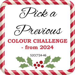 Hello everyone. One of my previous creations was chosen as the winner for the November theme at 52 Christmas Card Throwdown, and as such was invited to be a Guest design team Member for an upcoming challenge. The challenge starts today, and the theme is to create using a previous colour theme from 2024. All the previous themes are listed on the top of their blog page.