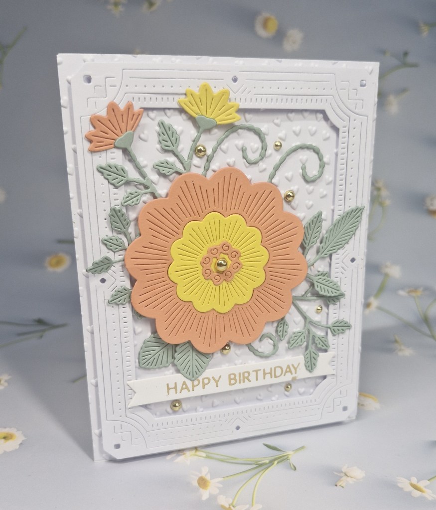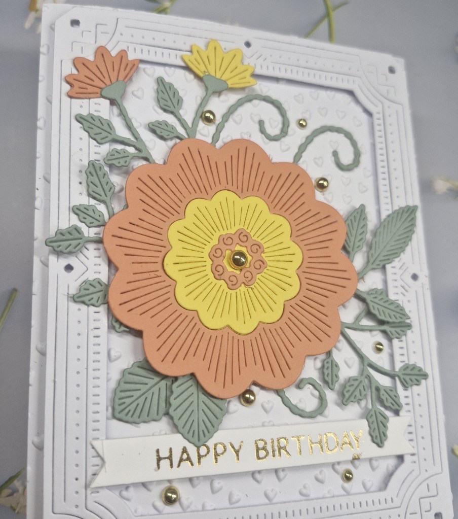 Hello again. I had time to play in my craft room using some flower dies from The Greetery I haven’t used as yet:
