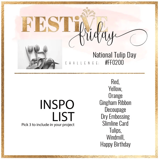 Festive Friday – at least three items from inspiration list – orange, yellow, red, birthday, tulips,