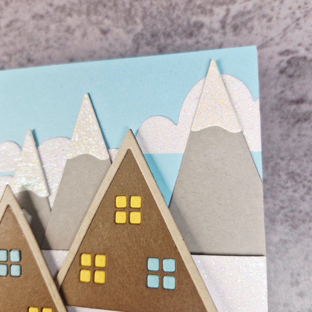 I added some champagne glitter card for the tops of the mountains so they would look a little different to the snow on the ground.