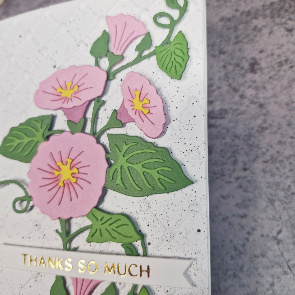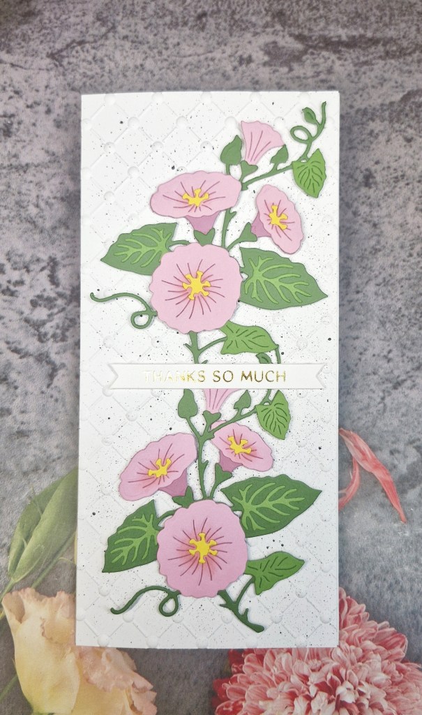 I chose to make a very tall card here, as I wanted to use two of the floral images. These florals are from The Greetery and are called ‘Botanicuts Morning Glory’.