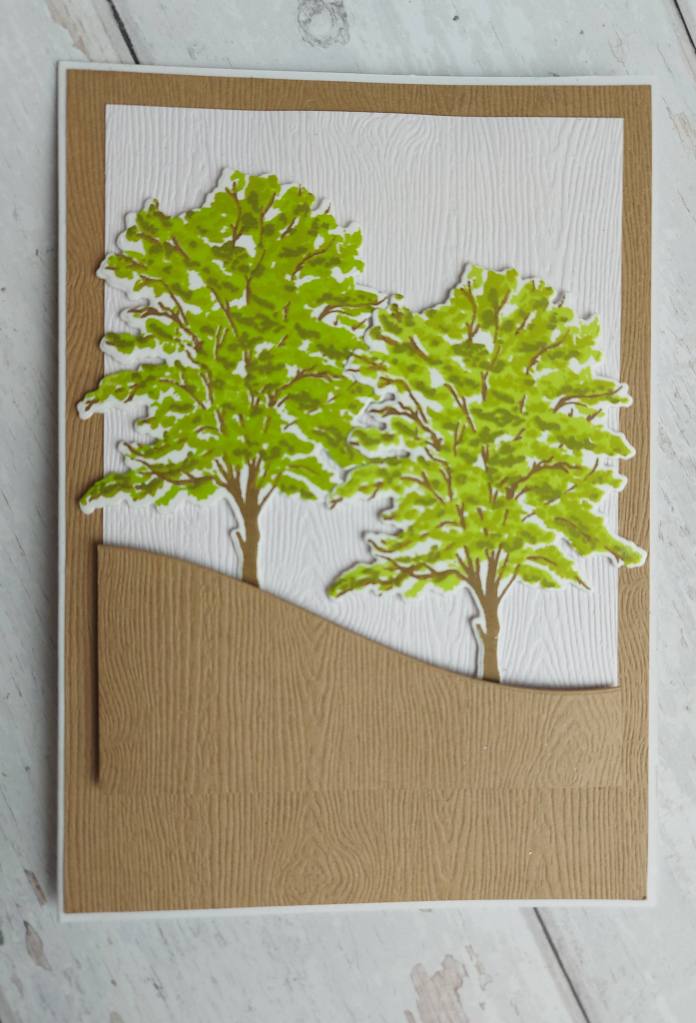 The trees themselves are from The Greetery – a new-to-me layering stamp set – then die cut with the matching dies.