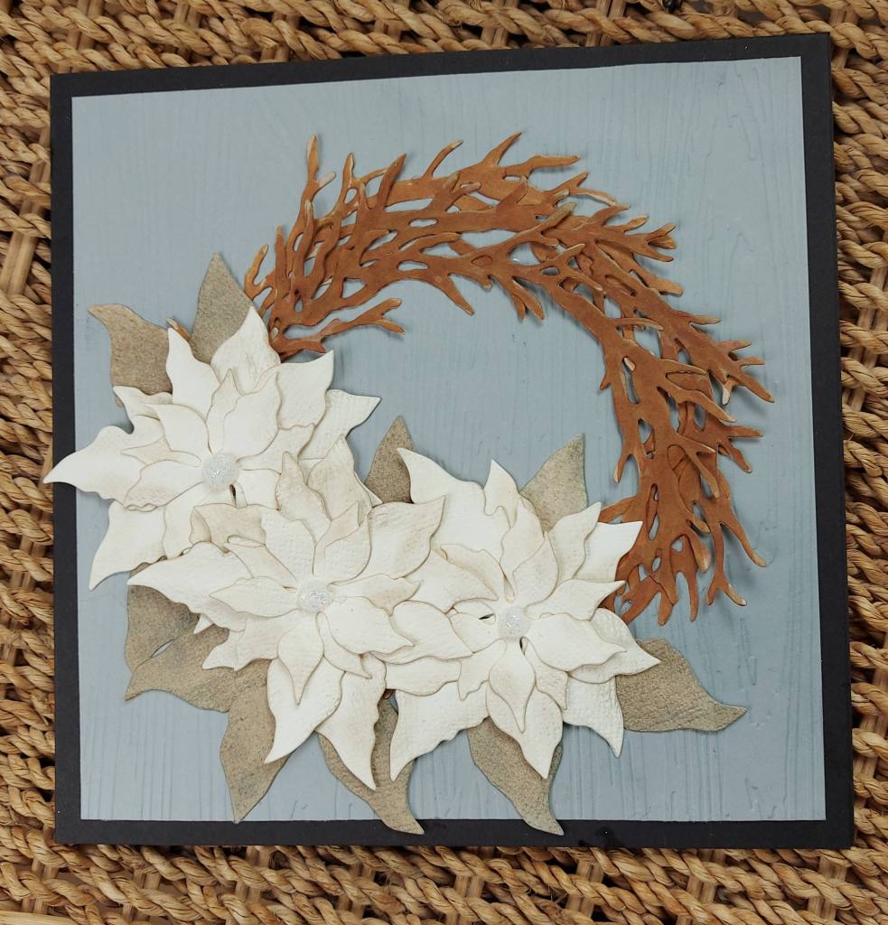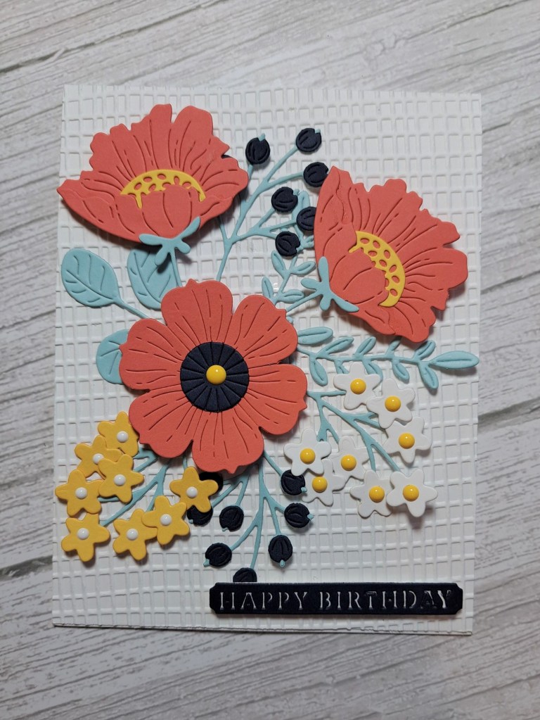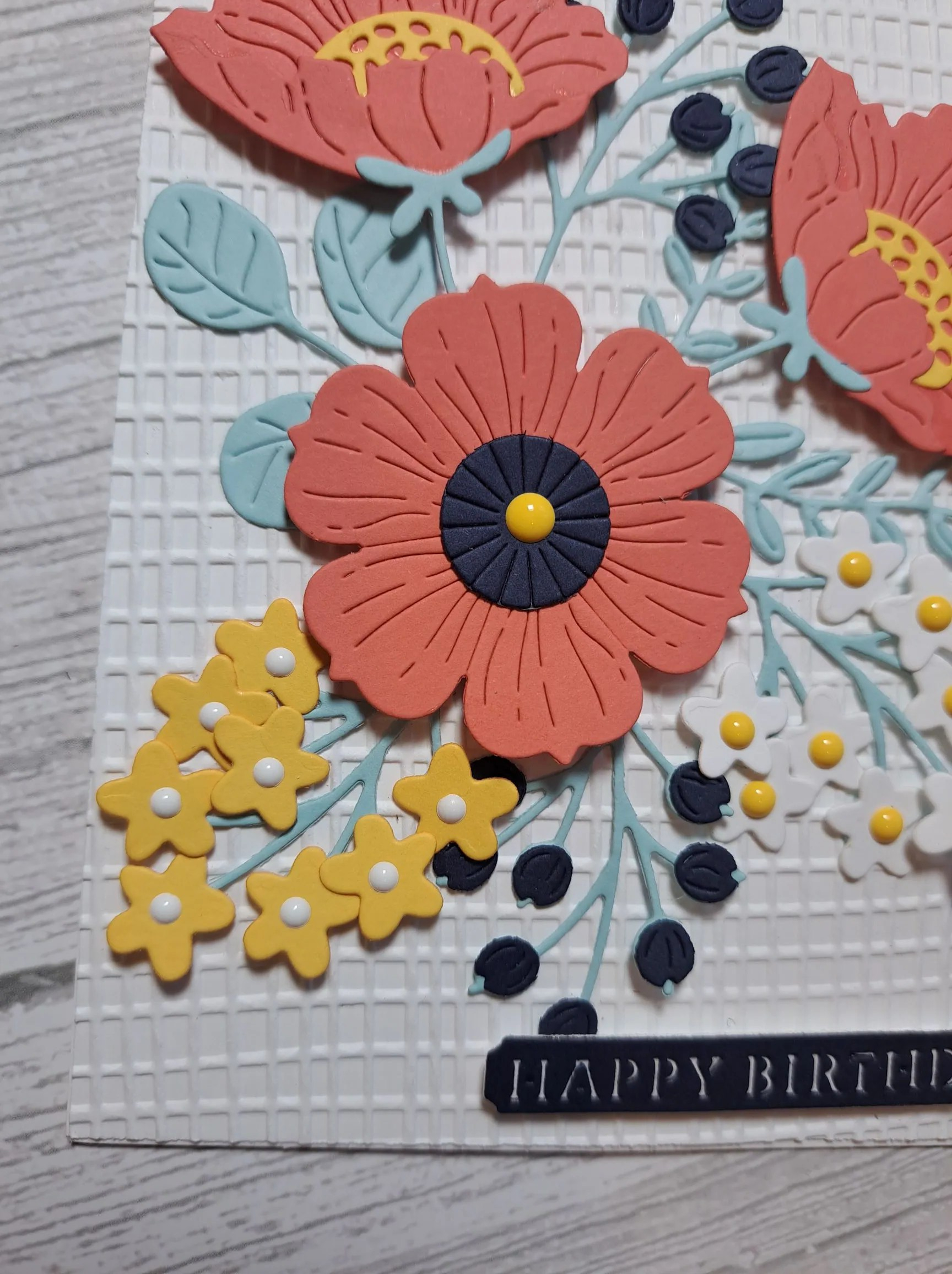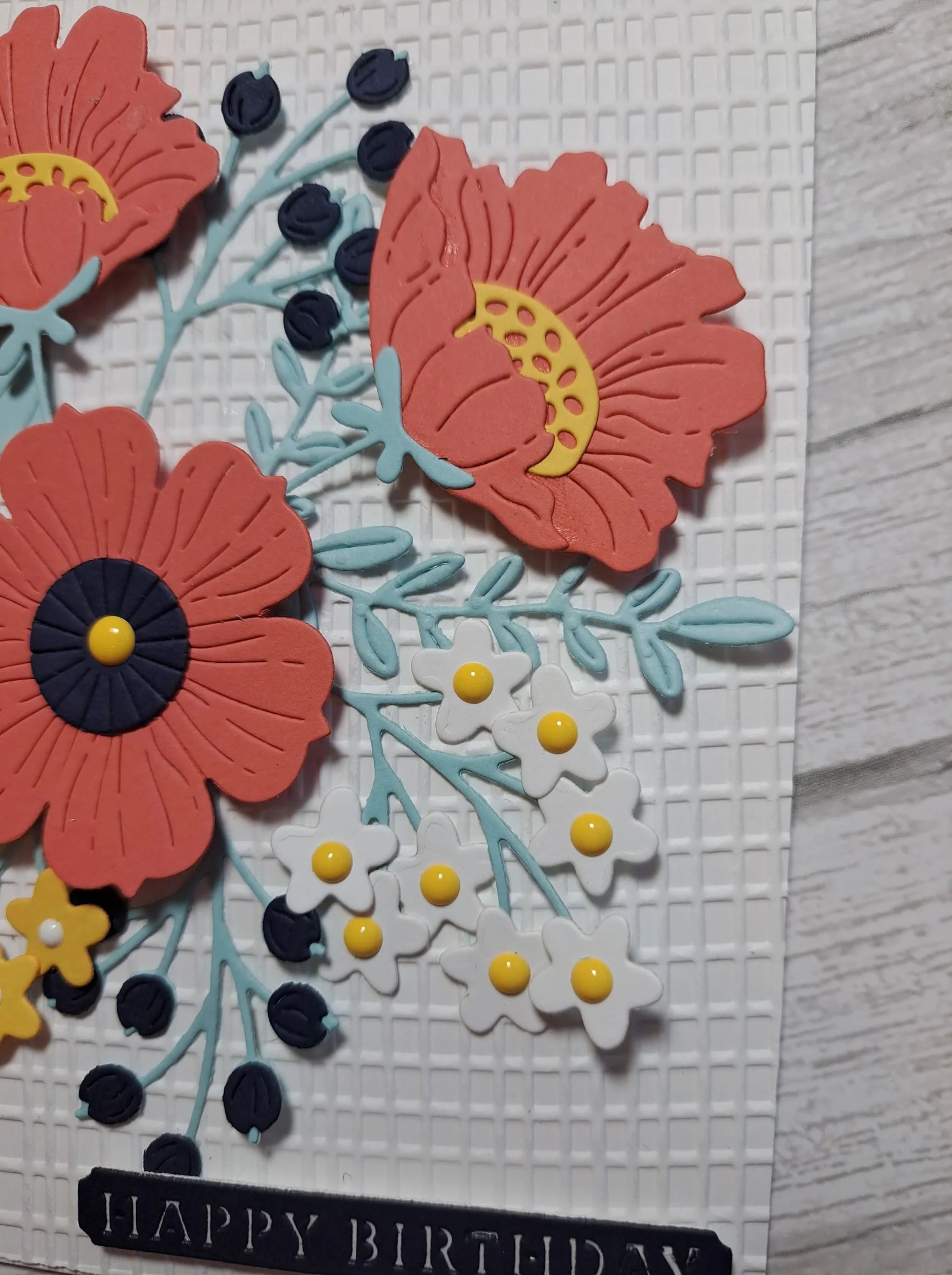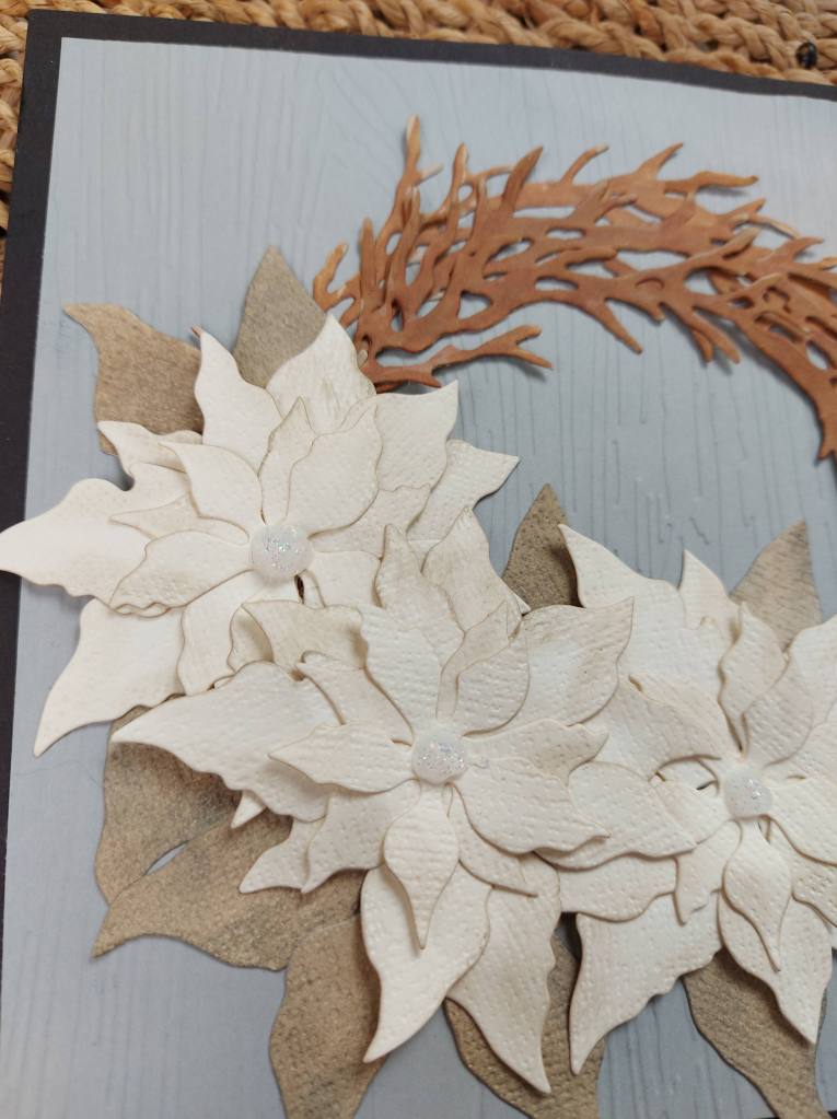 I was going to adhere the rose directly onto the black card base, which is why you can see a slightly off-set white layer behind the rose, but I didn’t like that stark appearance so I added the die cut white panel.
