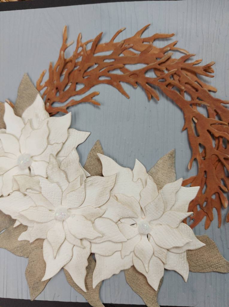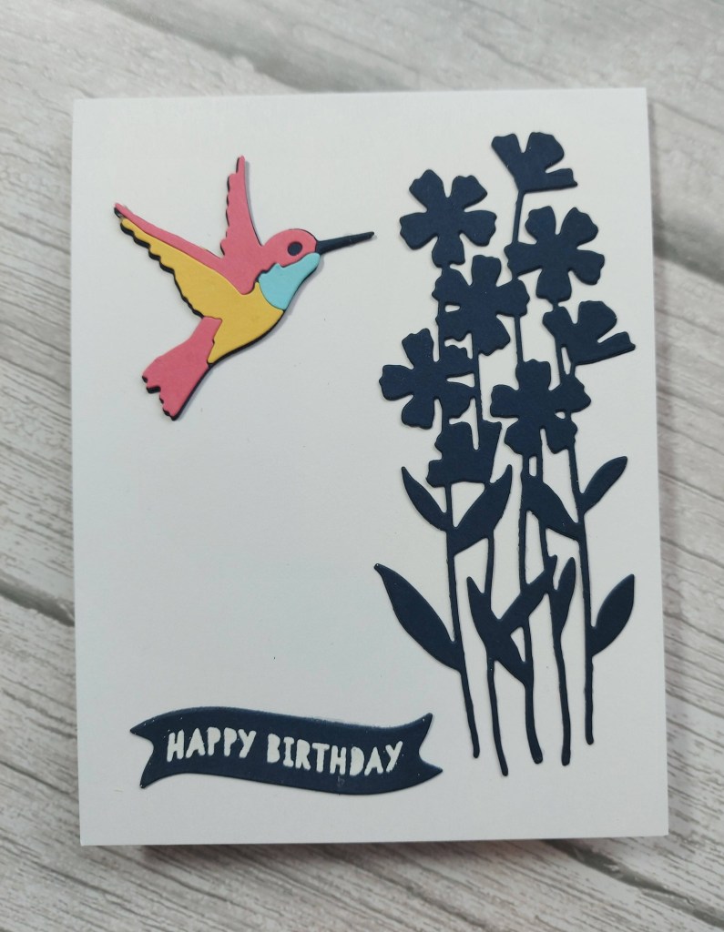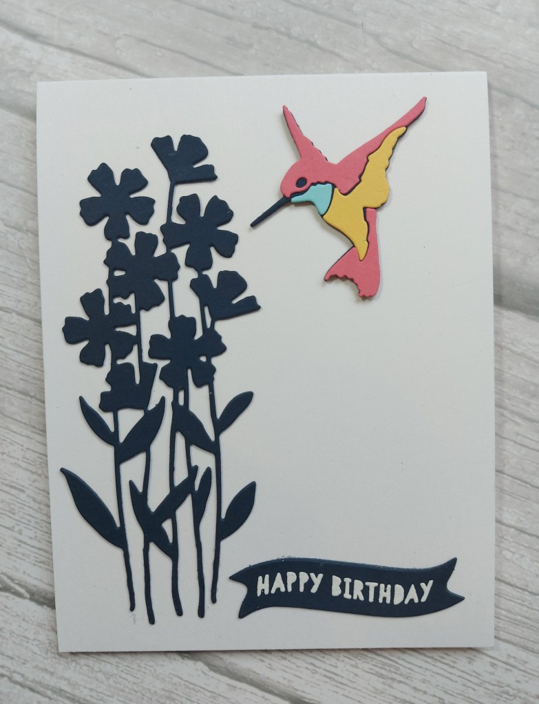 This multi layered rose die is from Honey Bee Stamps. There are seven – yes seven – layers to the rose itself, and I also added some very small foam squares between a couple of the layers for even more dimension. I used a selection of concord & 9th card stock to get maybe 4 different tones of purple – it could be five – but I lost count.