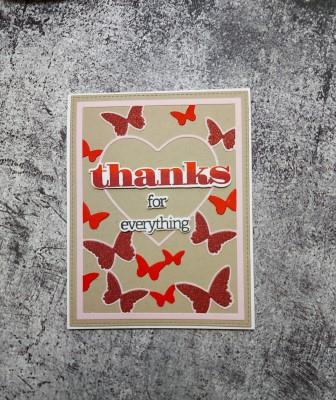 The sentiment is white heat embossed and die cut with a matching die, and I added some shimmery purple enamel gems here and there around the rose.