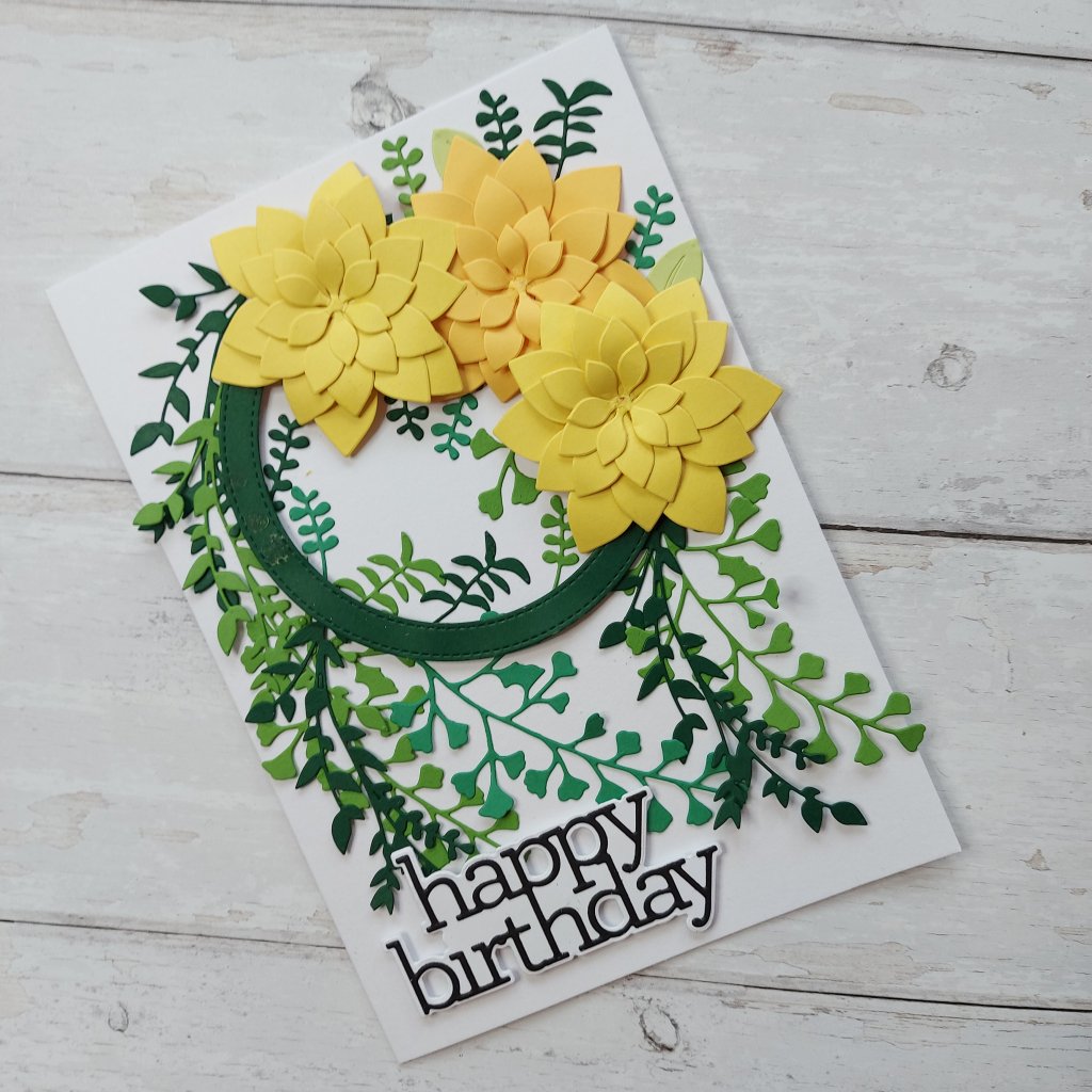 This card features just the card stock – all die cutting – mixing the three Concord & 9th ‘Fresh Cut Florals‘ die sets for several challenges: