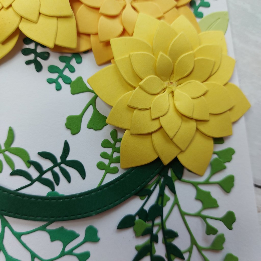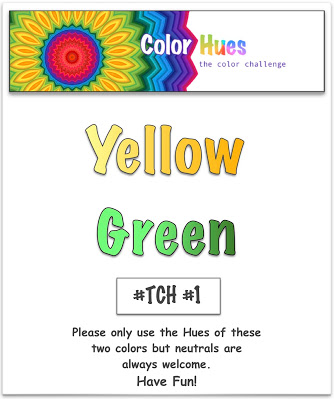 What can I say – when you’re in the die-cutting mood – you just go for it, don’t you? The colour scheme is from a new challenge called ‘Color Hues’, and to use tones of green and yellow.