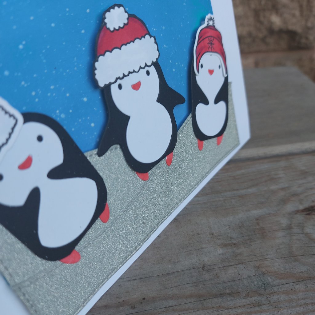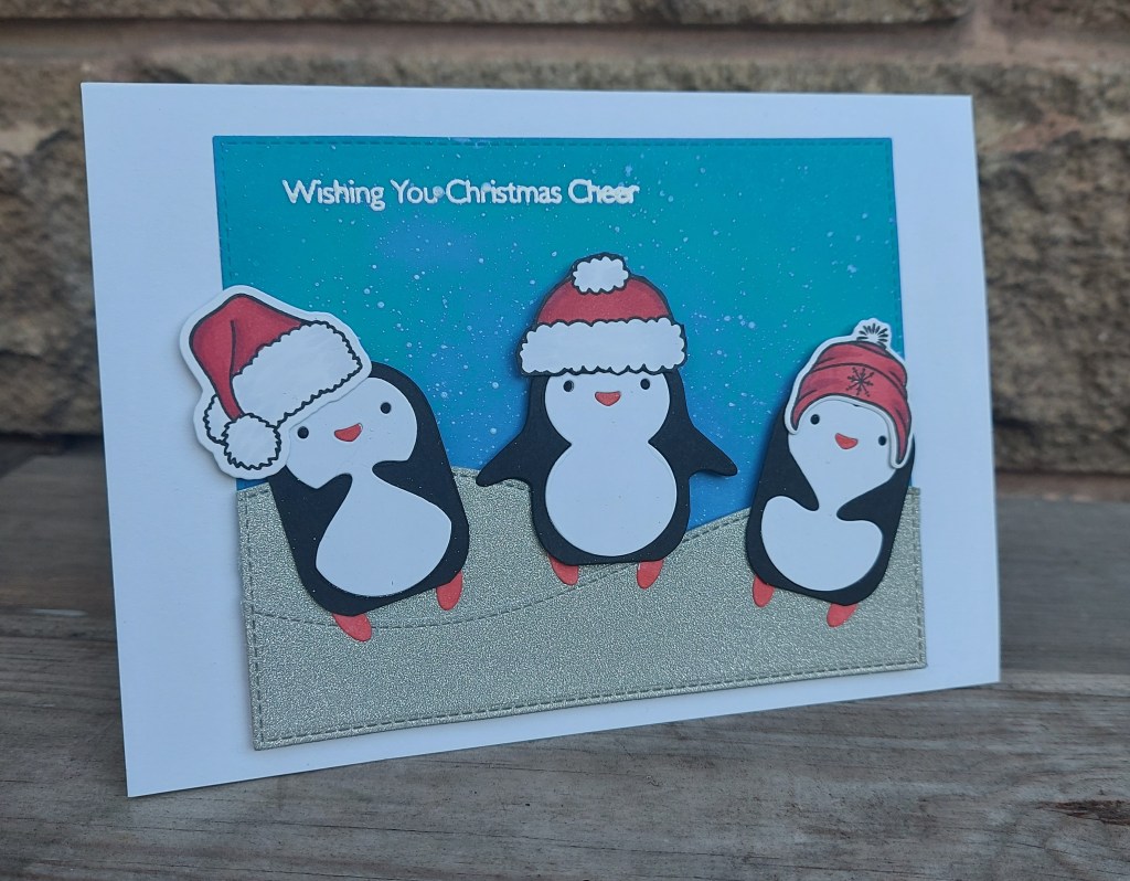 Hello again. ABC Christmas Challenge has reached the letters ‘C’ and ‘D’ – the Christmas themes this month are ‘C’ for Clean and Simple, and ‘D’ for Distressing. Here is my card: