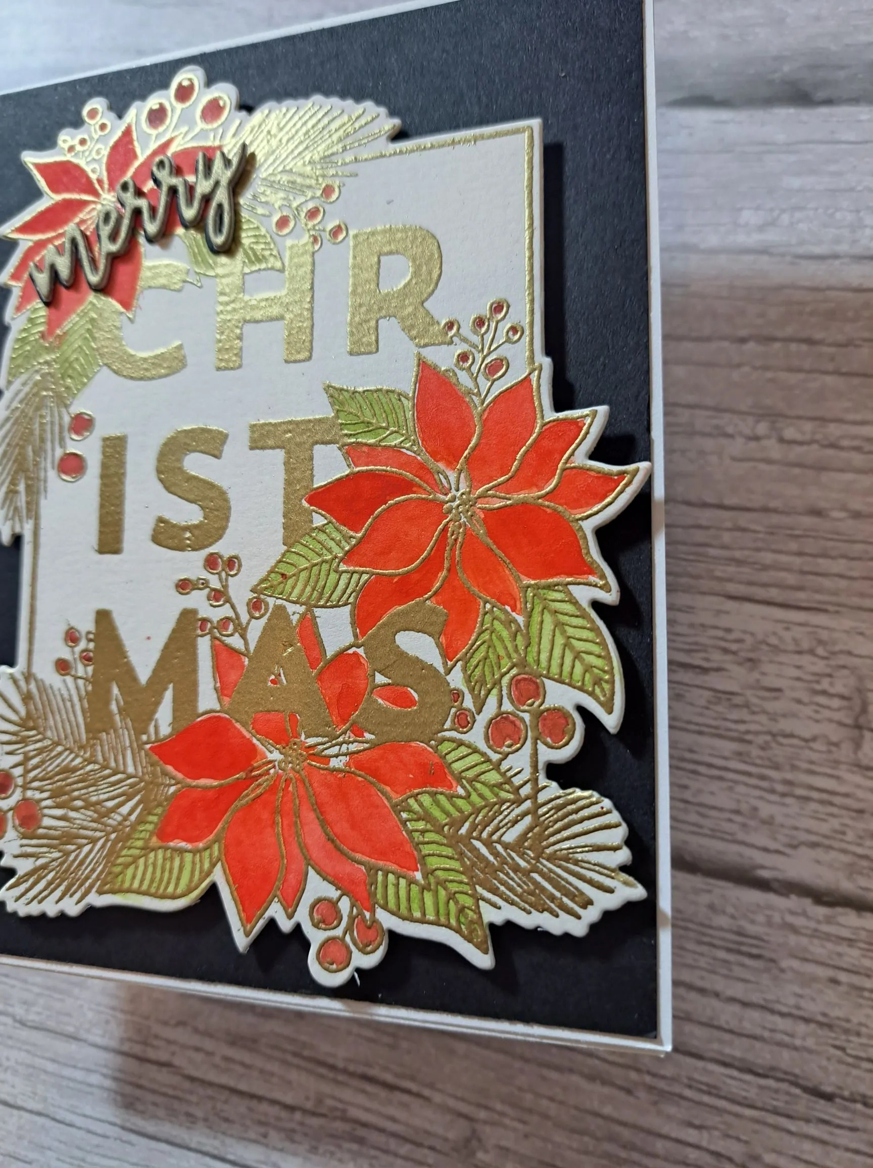 The foiled sentiment was also layered with black, and adhered flat to the panel.