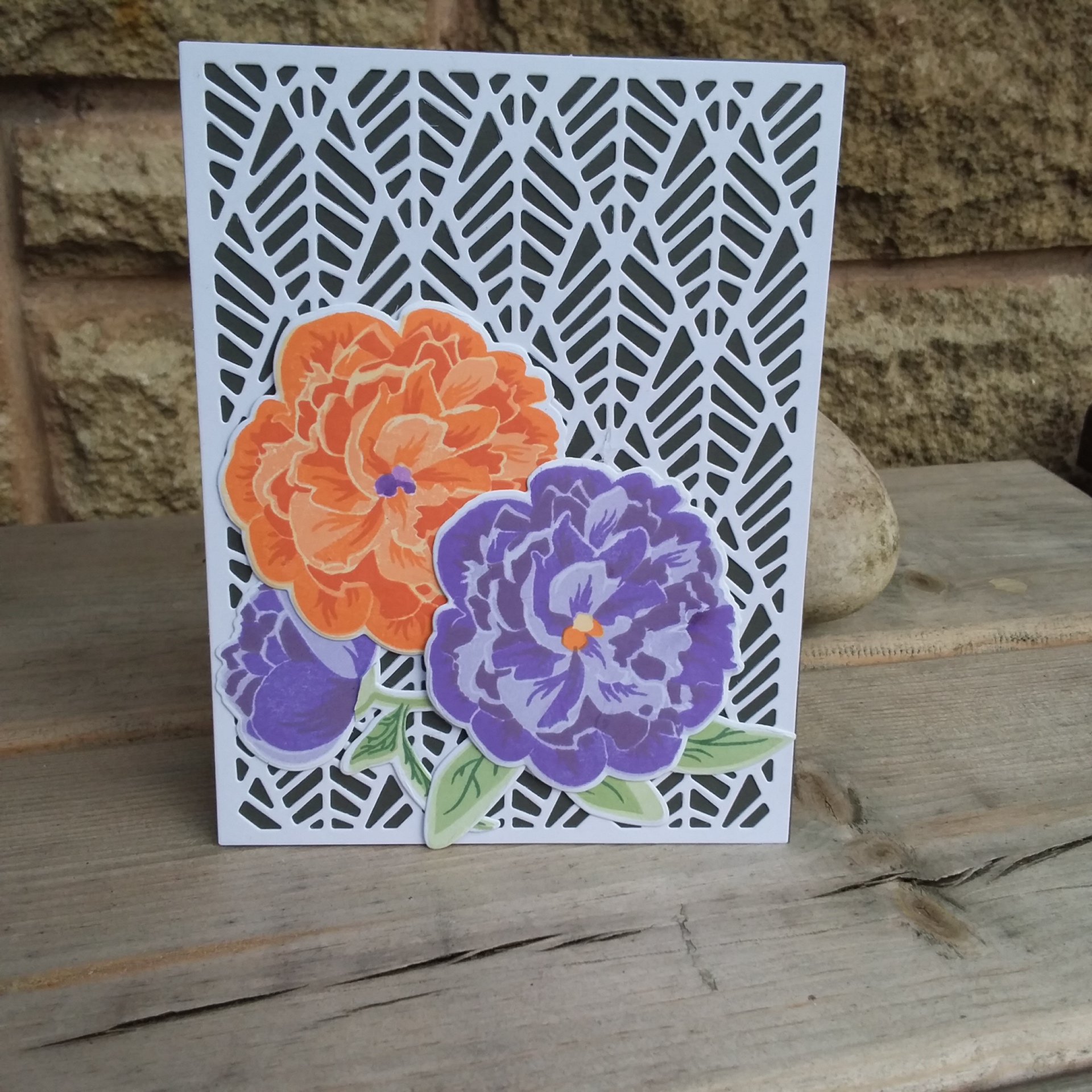 I die cut them, and arranged onto the white card, sticking them down with foam squares. As previously, I have not put a sentiment on it, but I may do in the future, though I quite like the look of the card as it is.