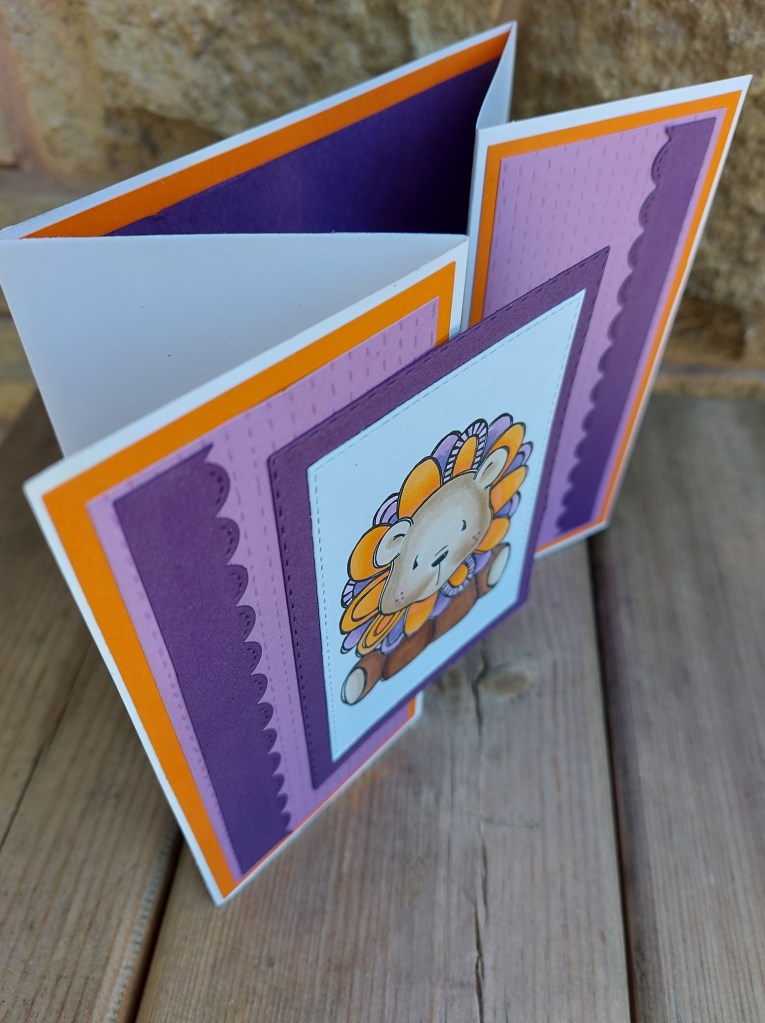 Hello there. I have a bright card to share today for the new challenge beginning at Cardz 4 Galz. This time we want to see your girlie cards with more than one score/fold. Here is my card: