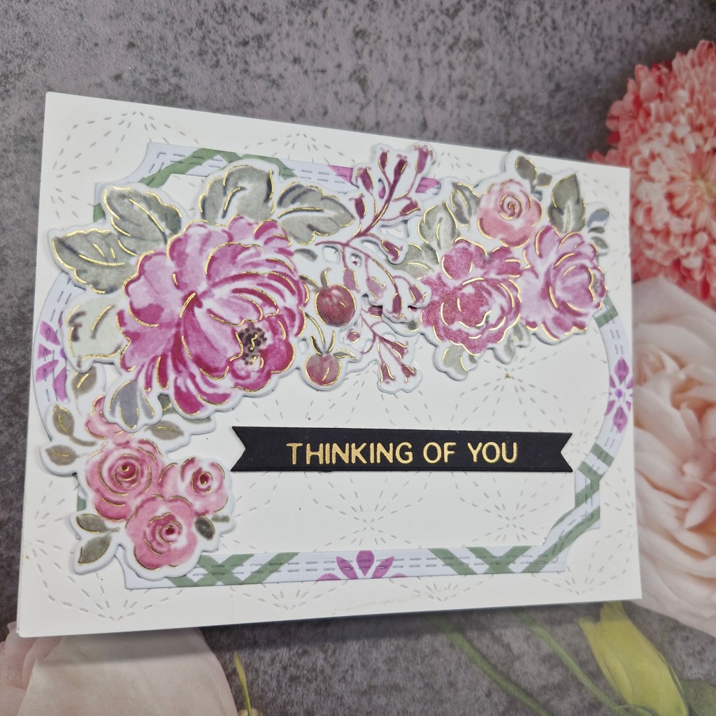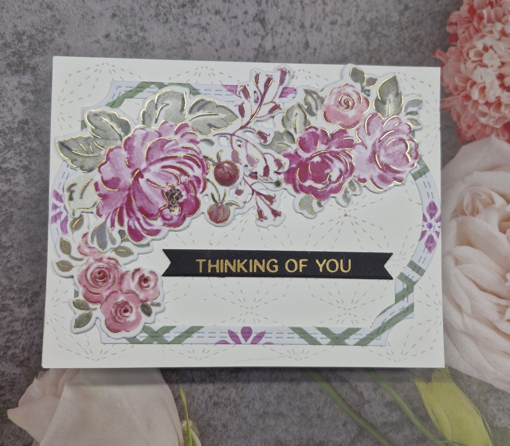The sentiment was previously foiled, and I chose a black sentiment to stand out from the colourful background.