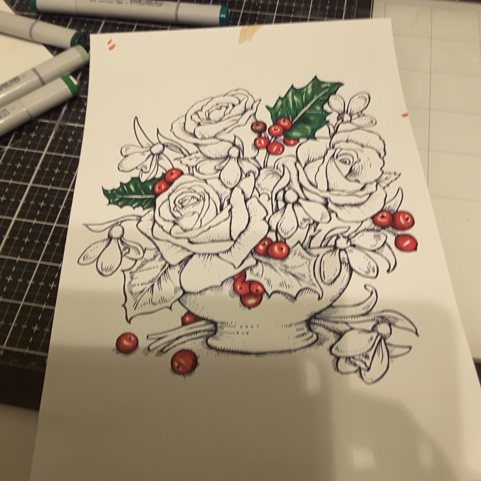 I started by stamping then colouring the image, and using my Scan’n’cut to cut around the outline.