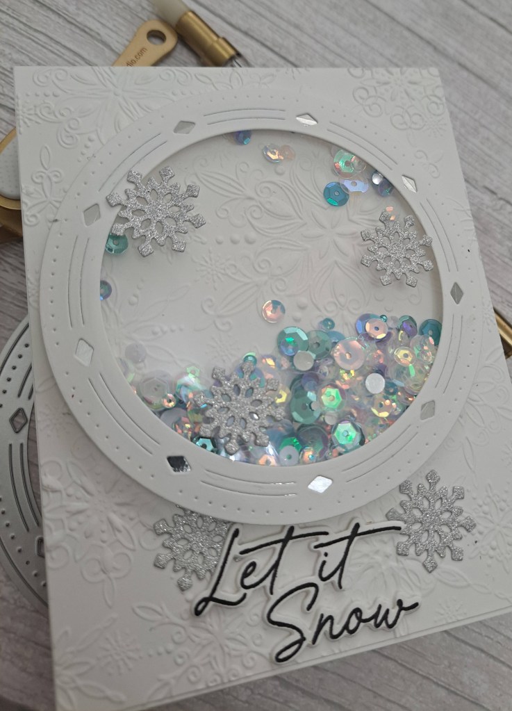 I stuck the shaker pocket down on three sides, added a whole bunch of sequins and other stuff I seem to collect and never use, then sealed the fourth side. I may have added more than is needed – but I do like to see all those sequins move around.
