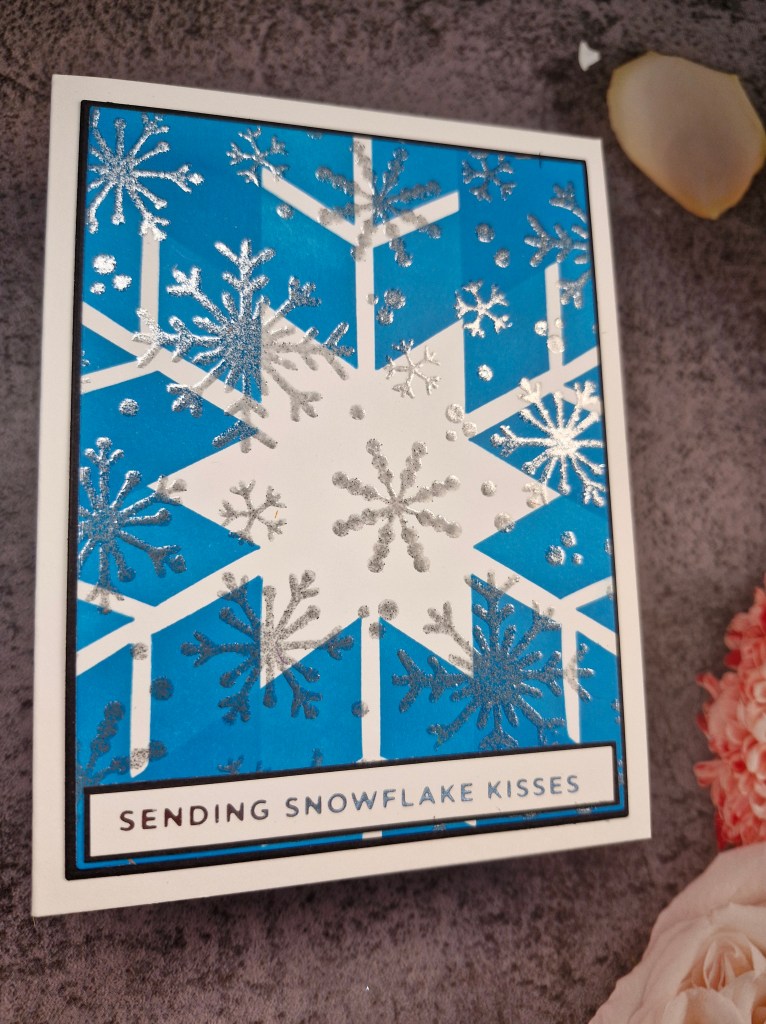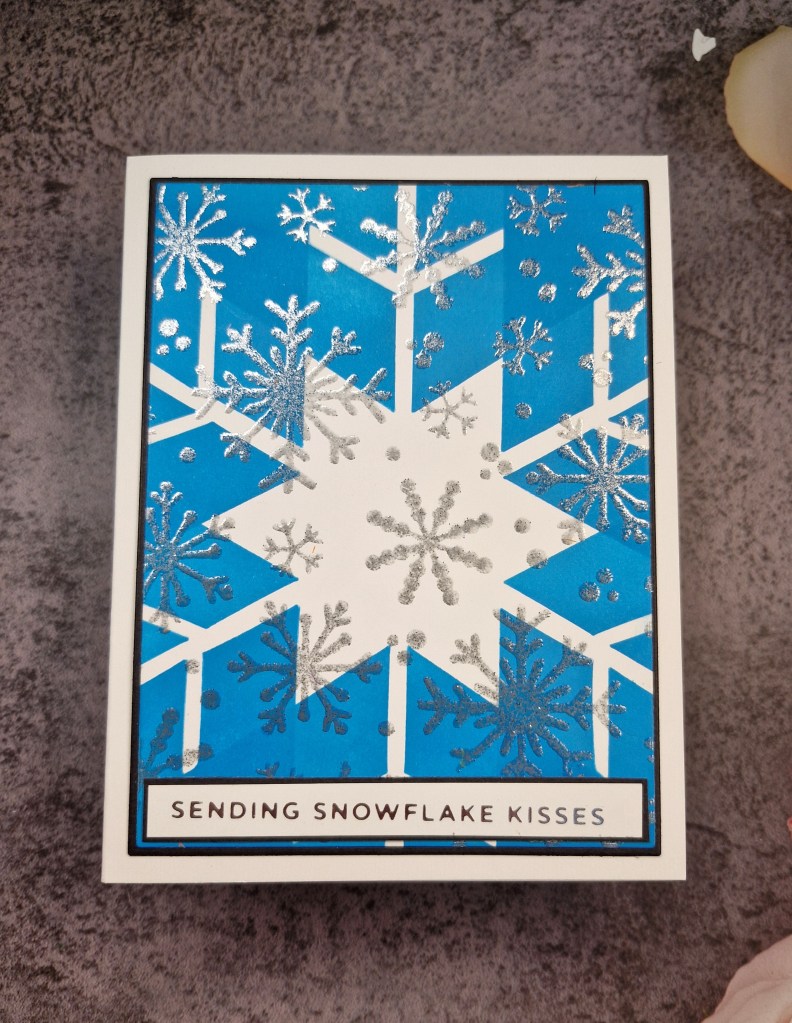This manila tag I left the top part unshaded, and used the Brutus Monroe ‘Starry Night‘ stencil with the Altenew embossing paste, then used the paste to create a thick and uneven bottom to it. I wanted this bottom to look like a snowfall – all the ridges and peaks. This was left to dry overnight.