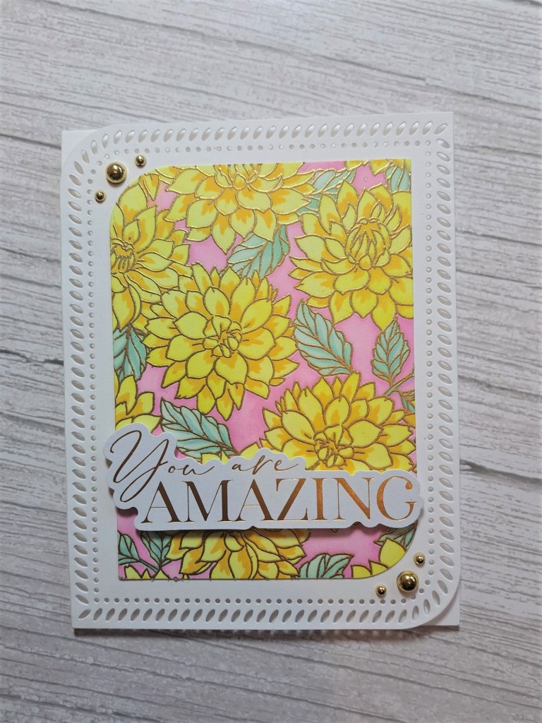 This is a very shiny and glittery card which makes it difficult to take a photo of – but I think you can see all the shine.